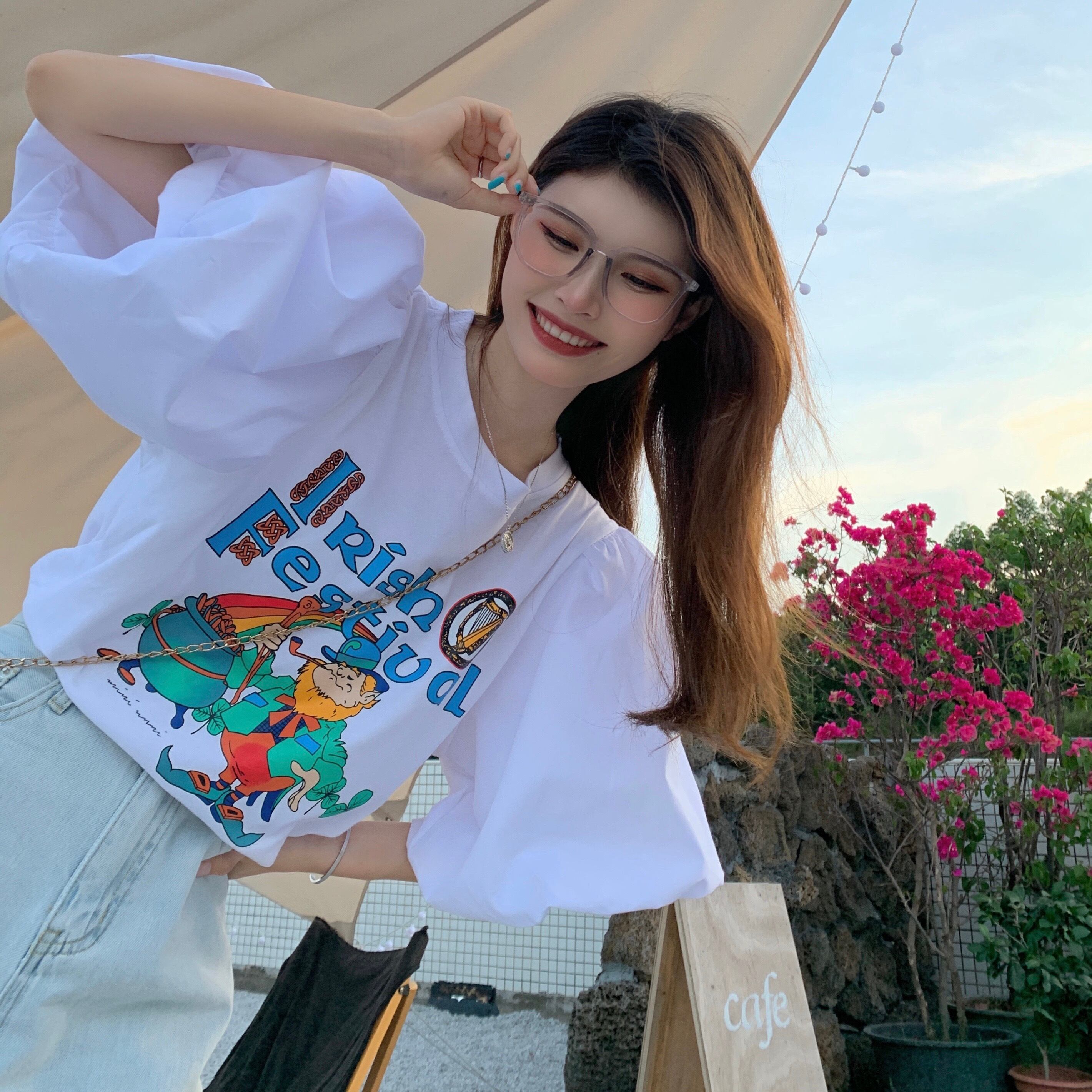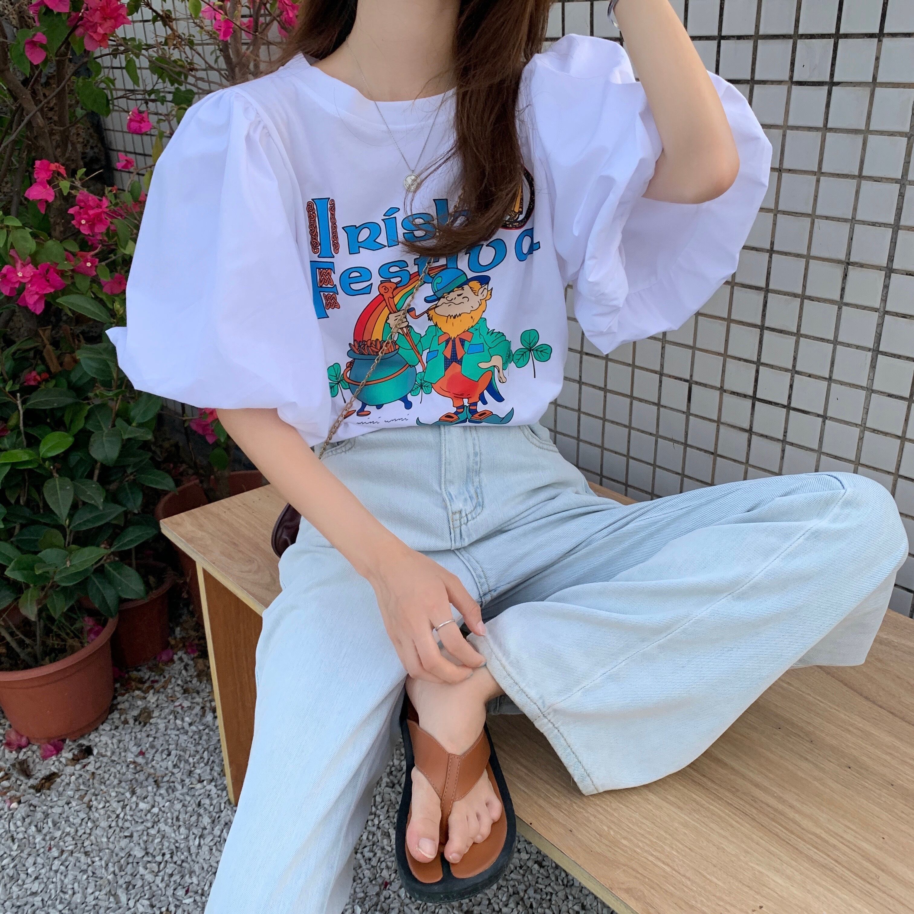 スリーブTシャツ サマールーズプリントトップス 夏物 1号婦人23833753664