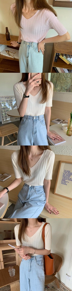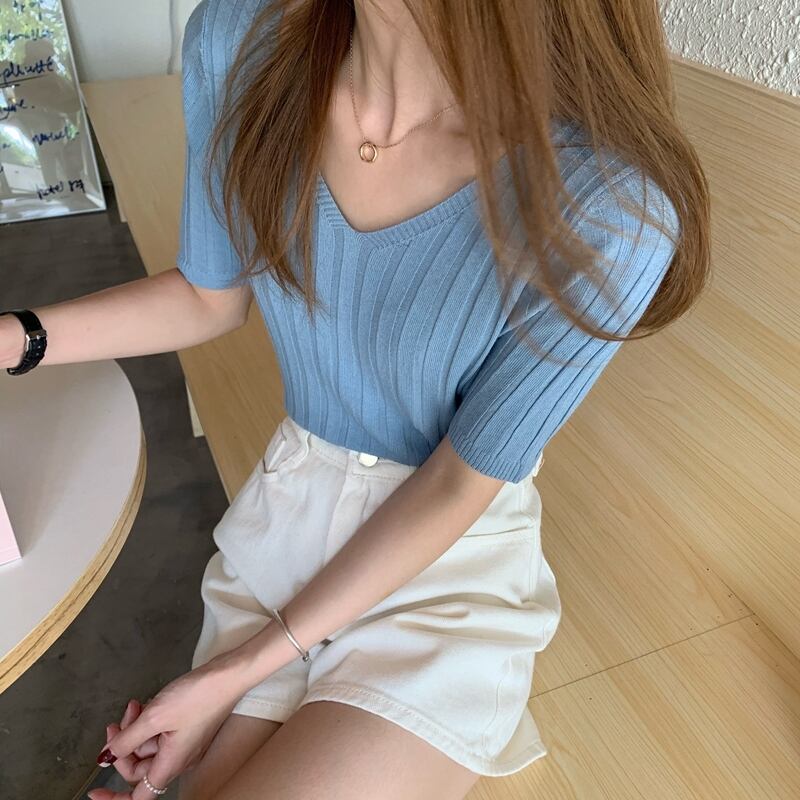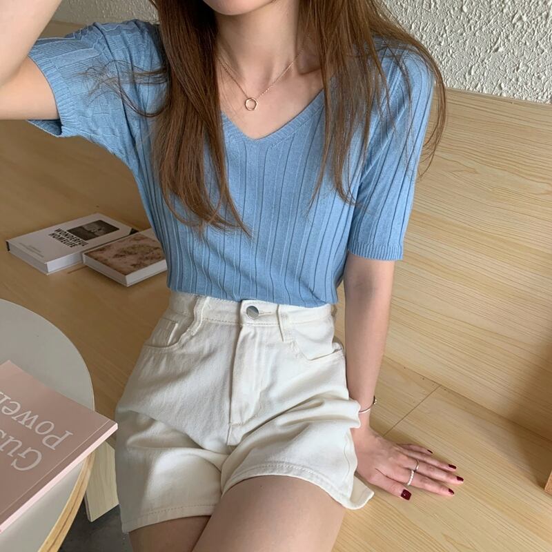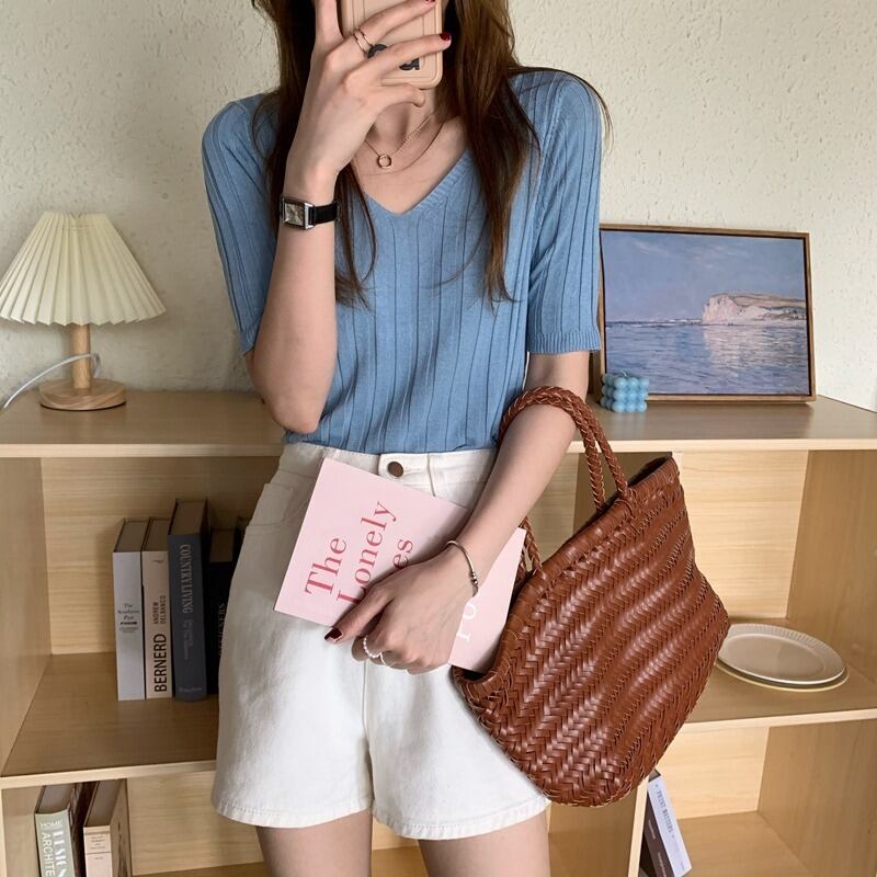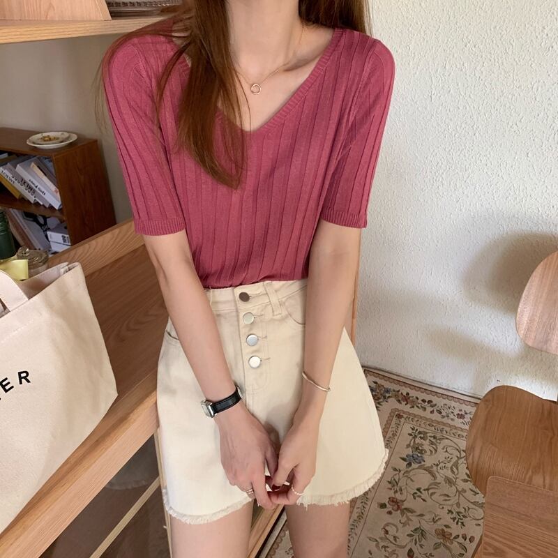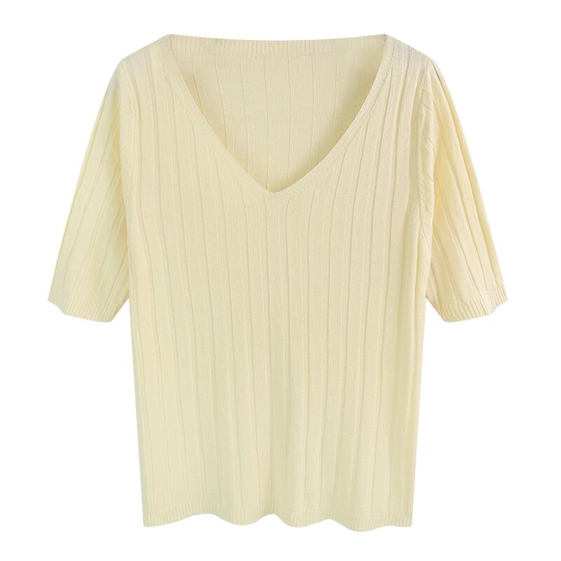 ニットセーター サマー薄手VネックTシャツ ルーズトップス 夏物 シルク 1号婦人39677650700