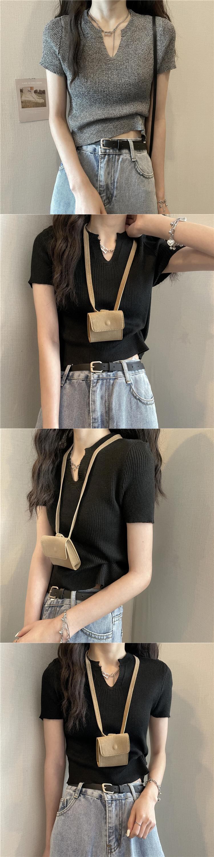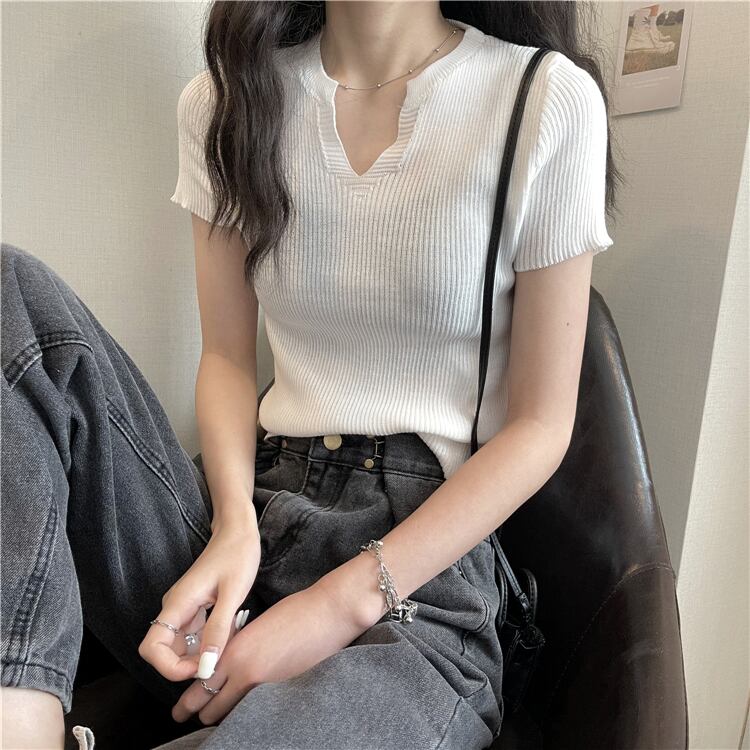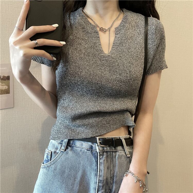 スタイルショートTシャツ レディースサマースリムグレーVネックセーター トップス 夏物 1号婦人32818123927