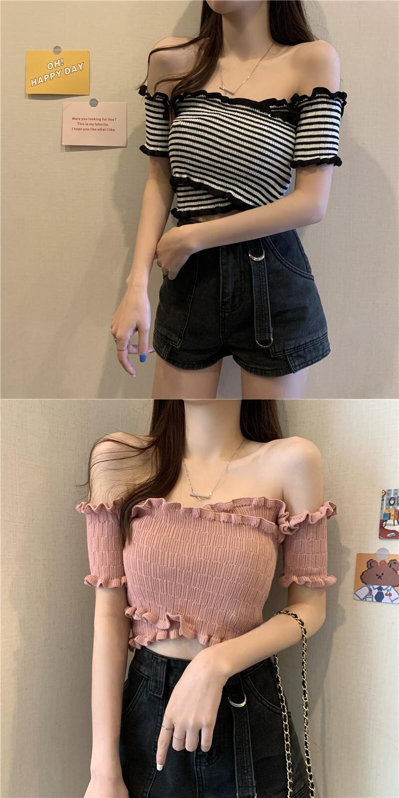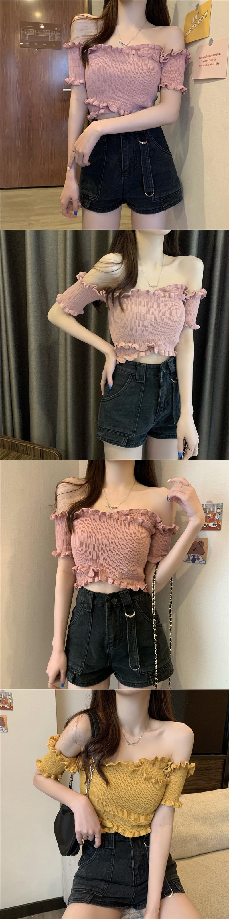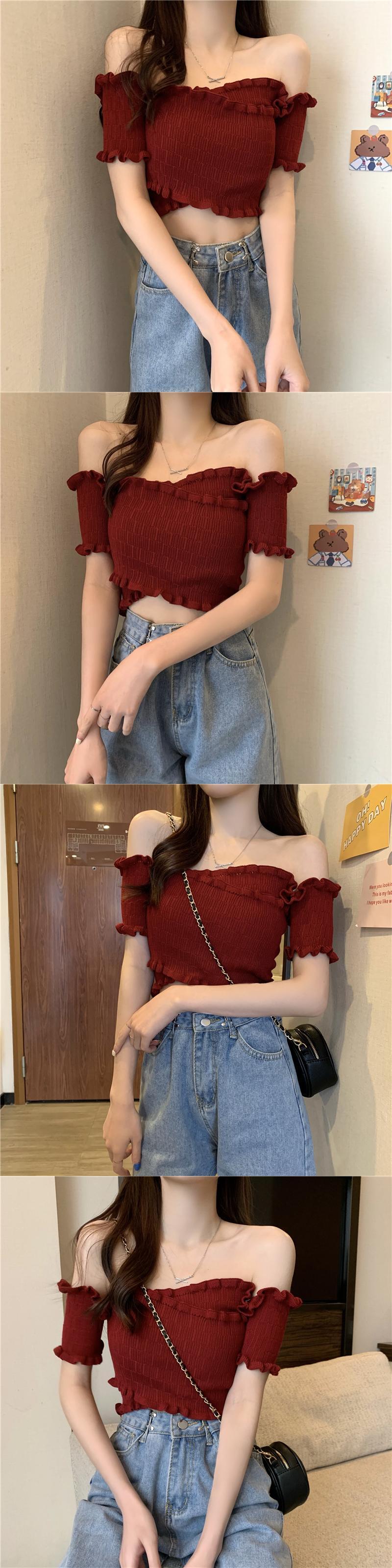 サマーショートニットTシャツ トップス 夏物 オフショルダー ヨーロピアン 1号婦人19690935553