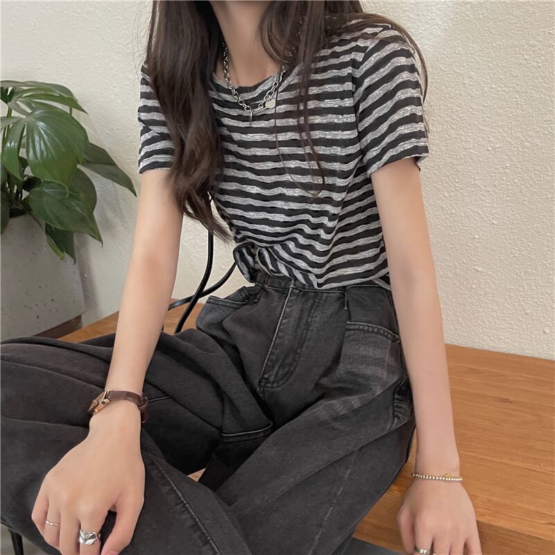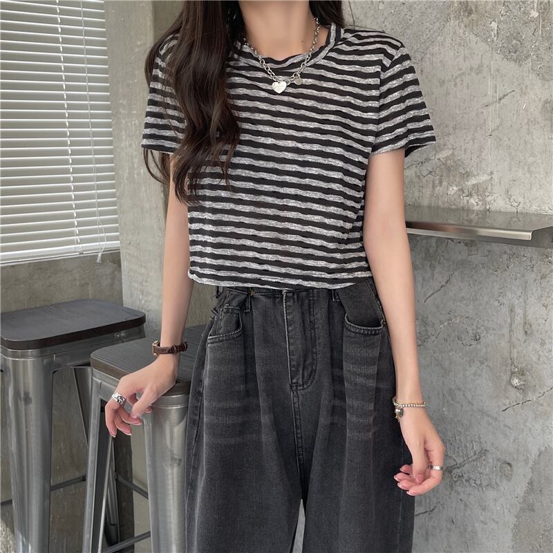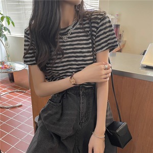 ブラウス サマーTシャツ 薄手ストライプ 大人ガーリー スウィート キュート カジュアル 夏物 1号婦人29016914238