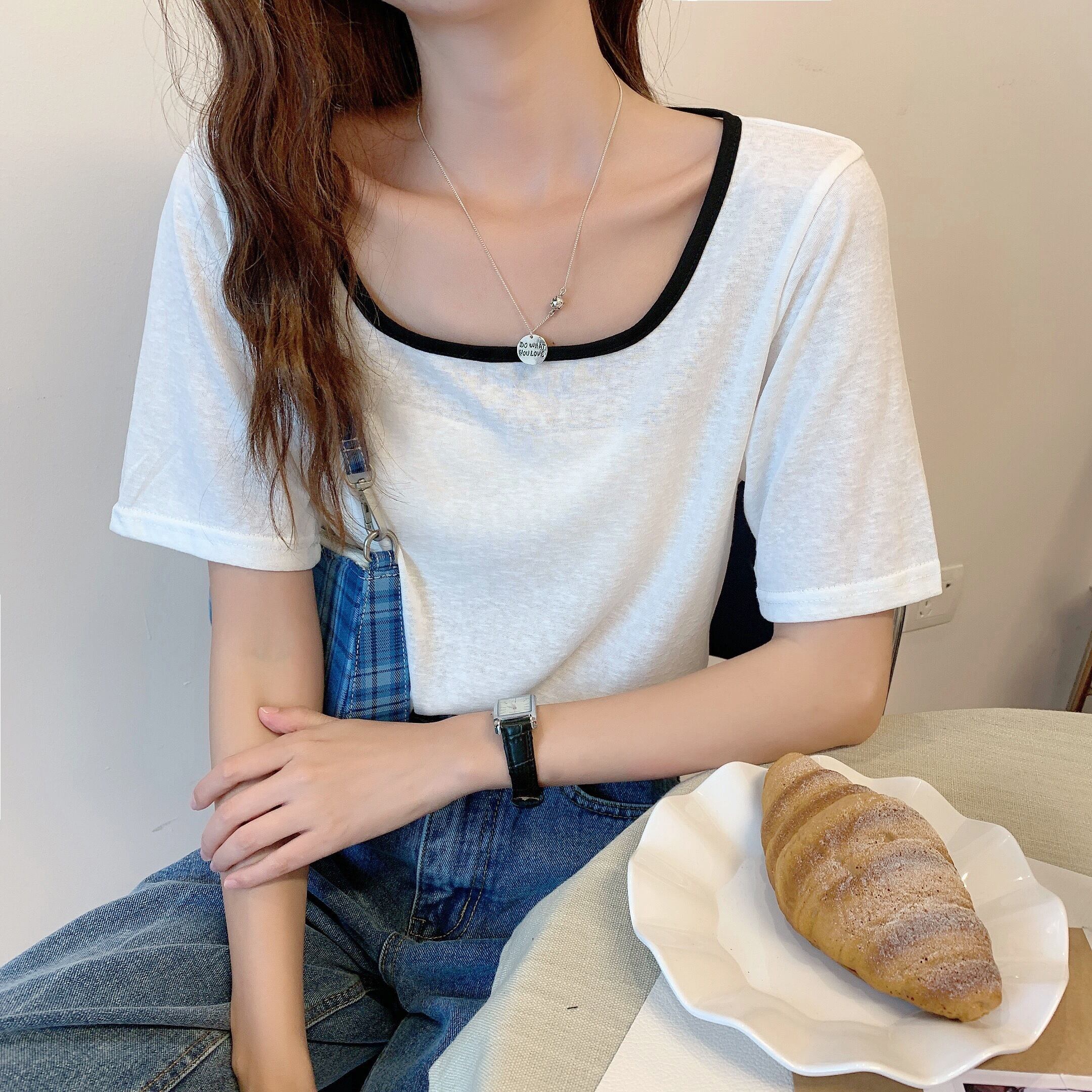 ショートトップス レディースサマールーズホワイト半袖スリーブTシャツ ハーフスリーブ 夏物 スクウェア 1号婦人72645093662