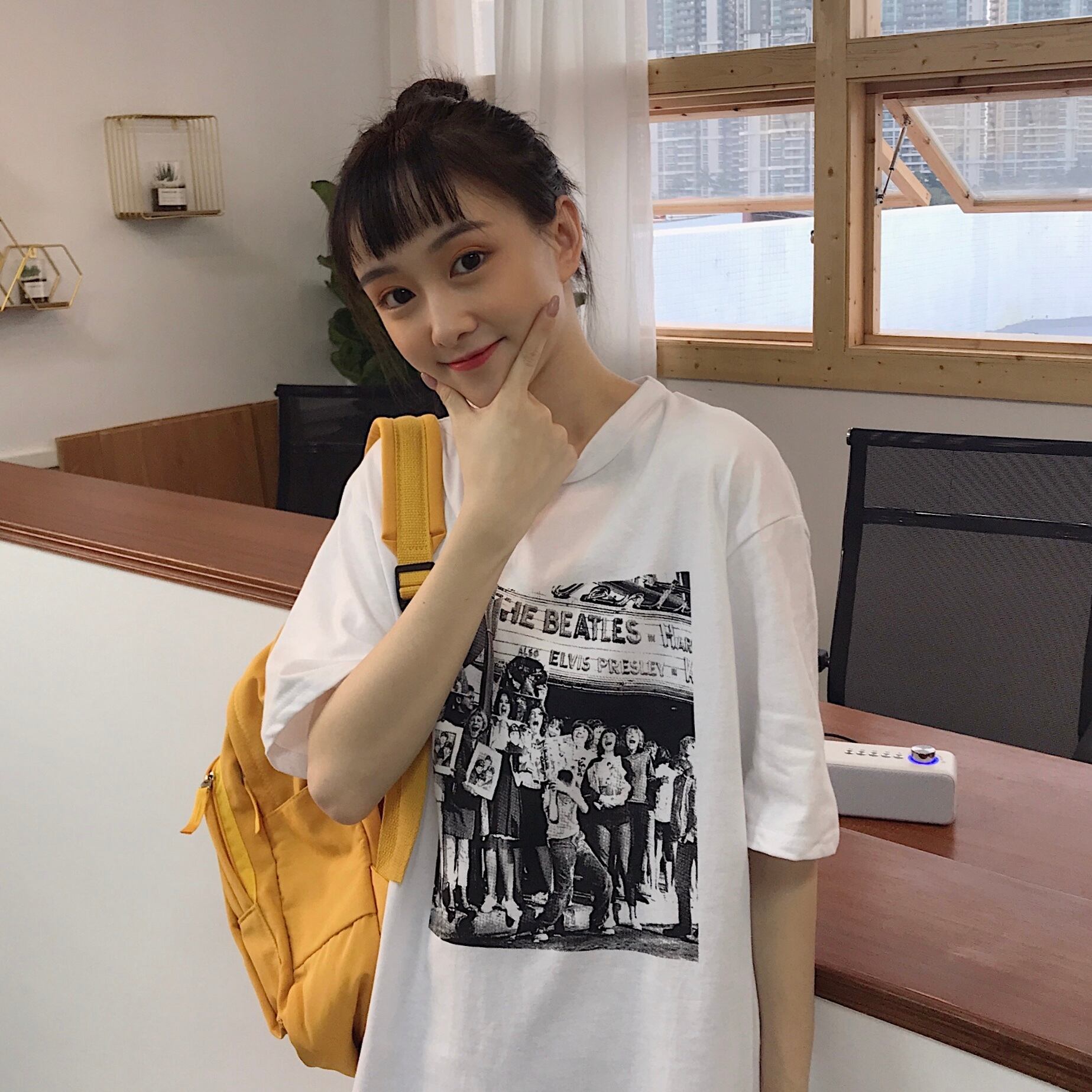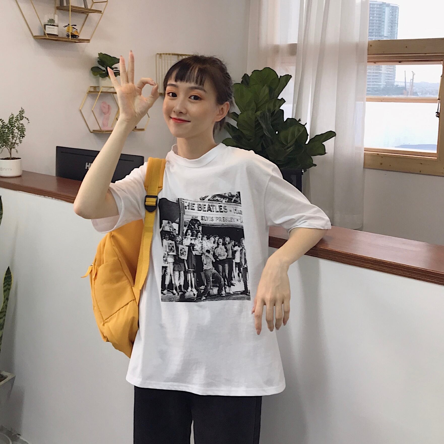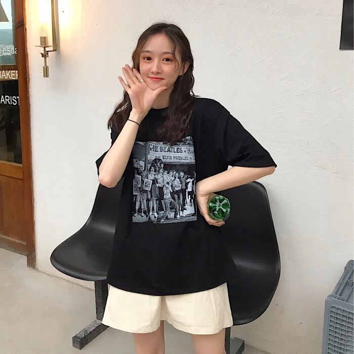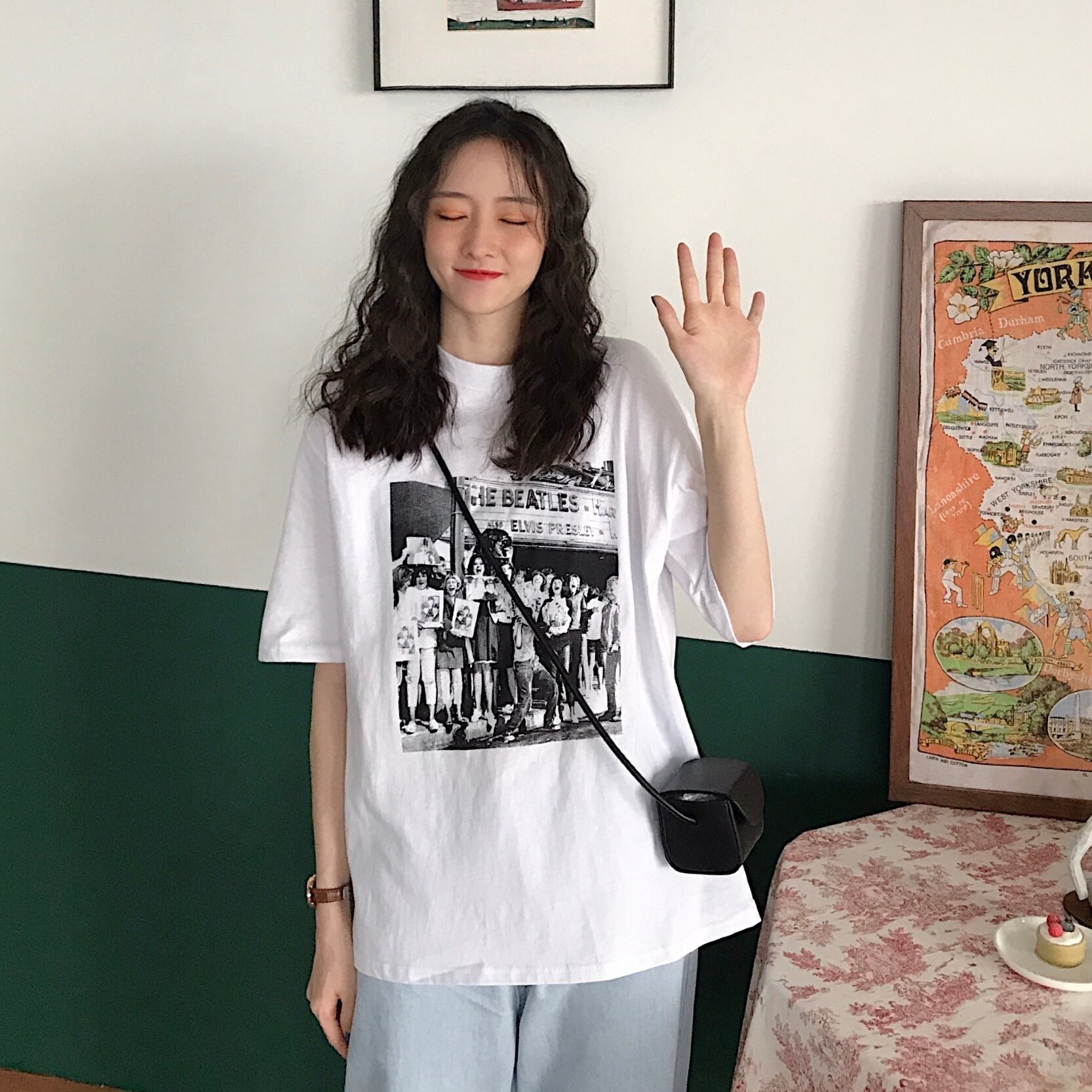 スタイルホワイトTシャツ シャツ スプリングサマースタンダードルーズトップス レトロ かわいい 春物 夏物 1号婦人16027826774