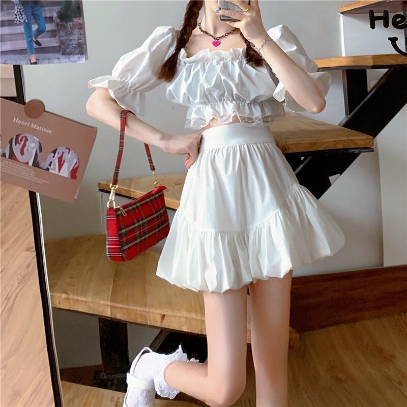 スプリングサマースカート Aラインスタイルハイウェストウェスト薄手ホワイトショート 春物 夏物 ステッチ 1号婦人52834081619