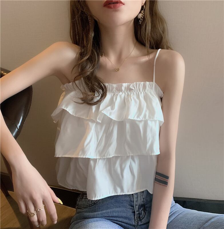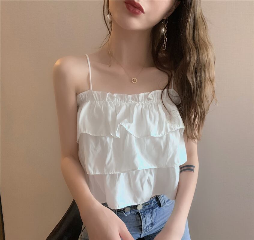 ラッフルショートノースリーブホワイトトップス サマー薄手 半袖 ハーフスリーブ 夏物 1号婦人87433874438