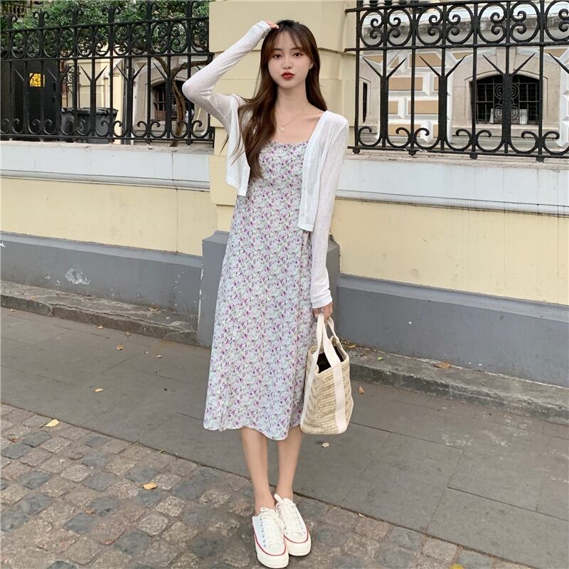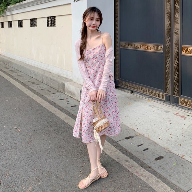 スプリングサマーレディーススタイル薄手カーディガンフローラルスカート ロング 春物 夏物 花柄 1号婦人28450481528