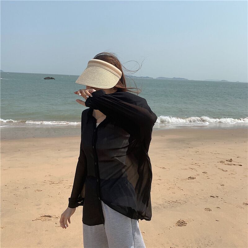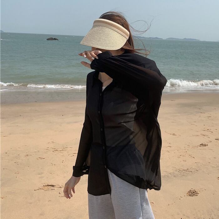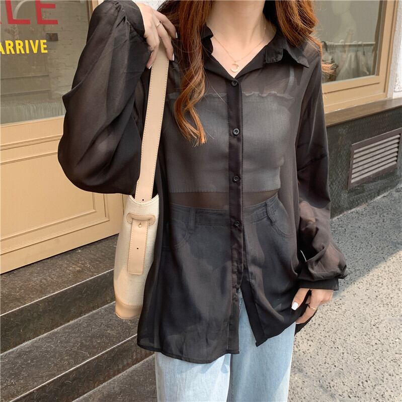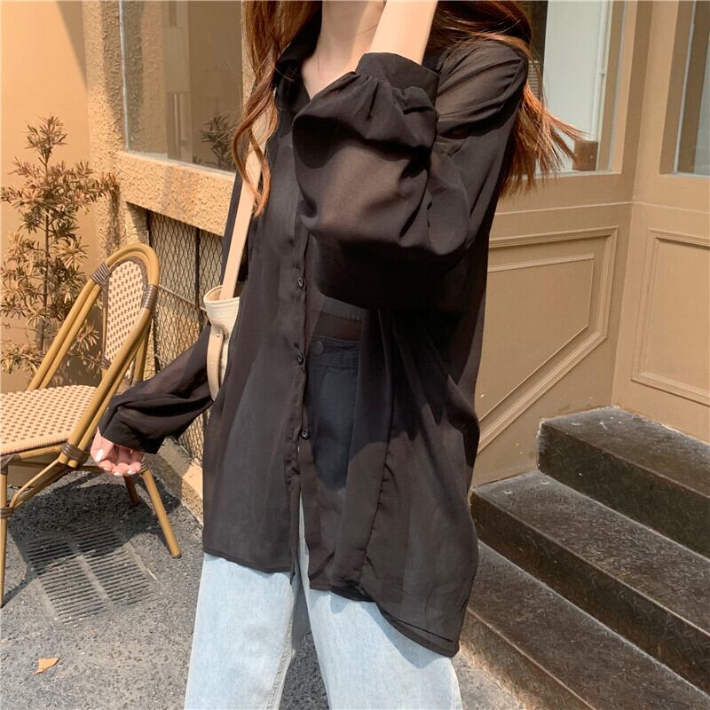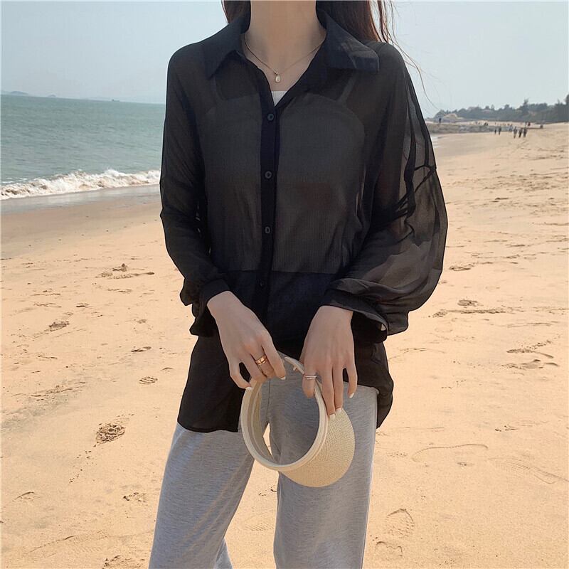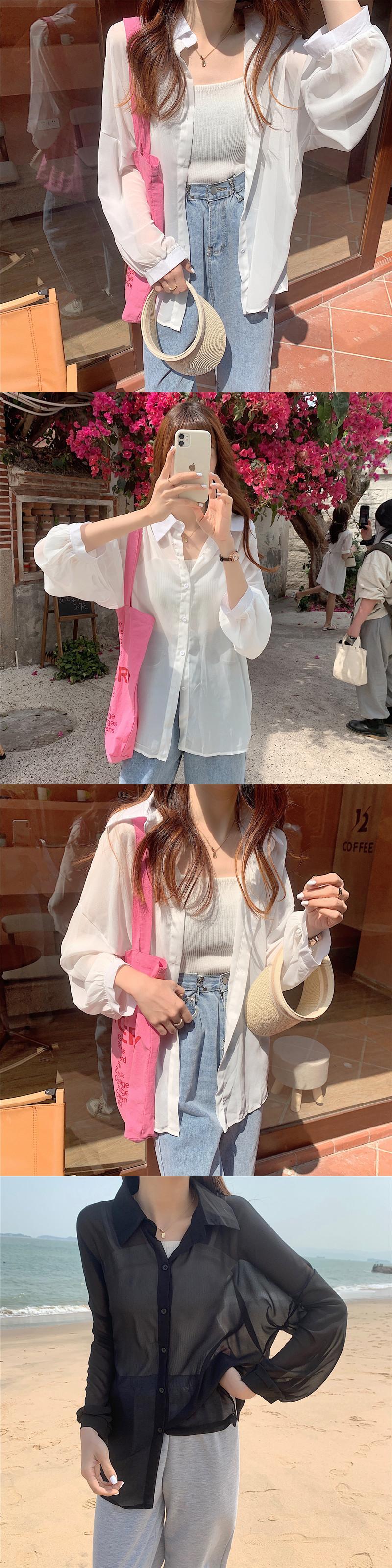 ホワイトシフォンシャツ サマー薄手ジャケット ルーズトップス ロング 夏物 1号婦人19879720106