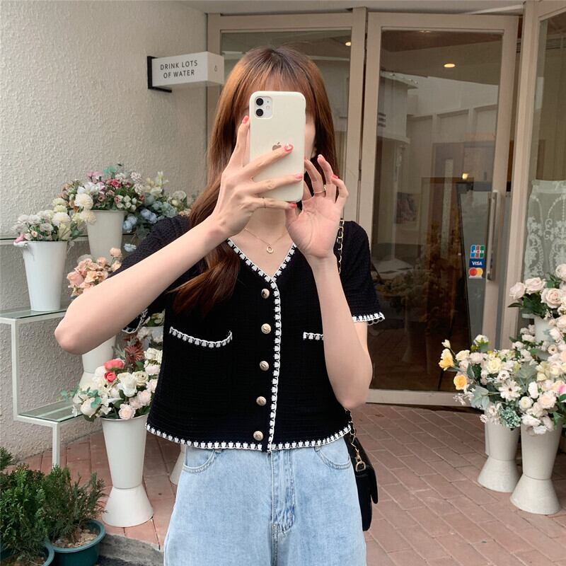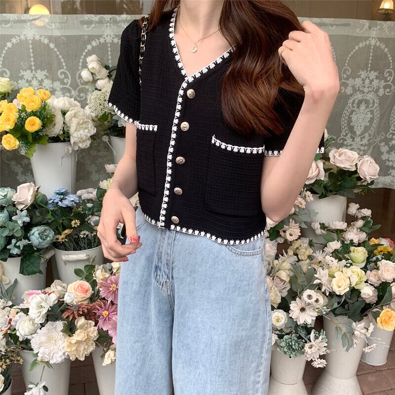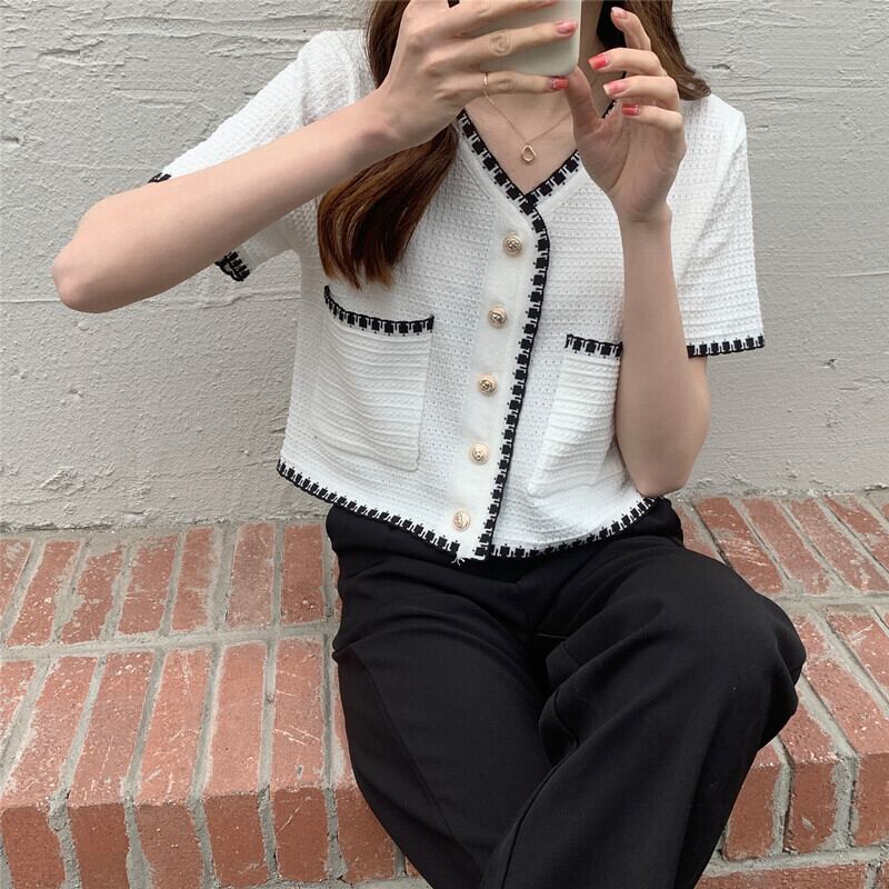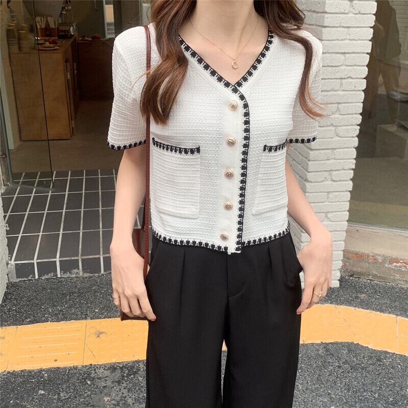 スプリングサマーニットカーディガンスタイルVネック薄手ショートトップス 春物 夏物 1号婦人71181324579