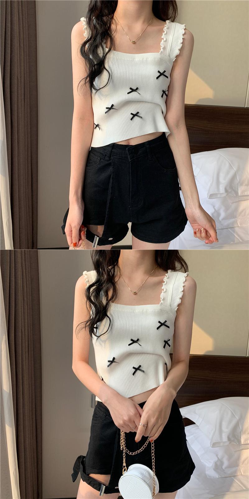スプリングサマーニットスリムショートトップス 春物 夏物 1号婦人83017375758