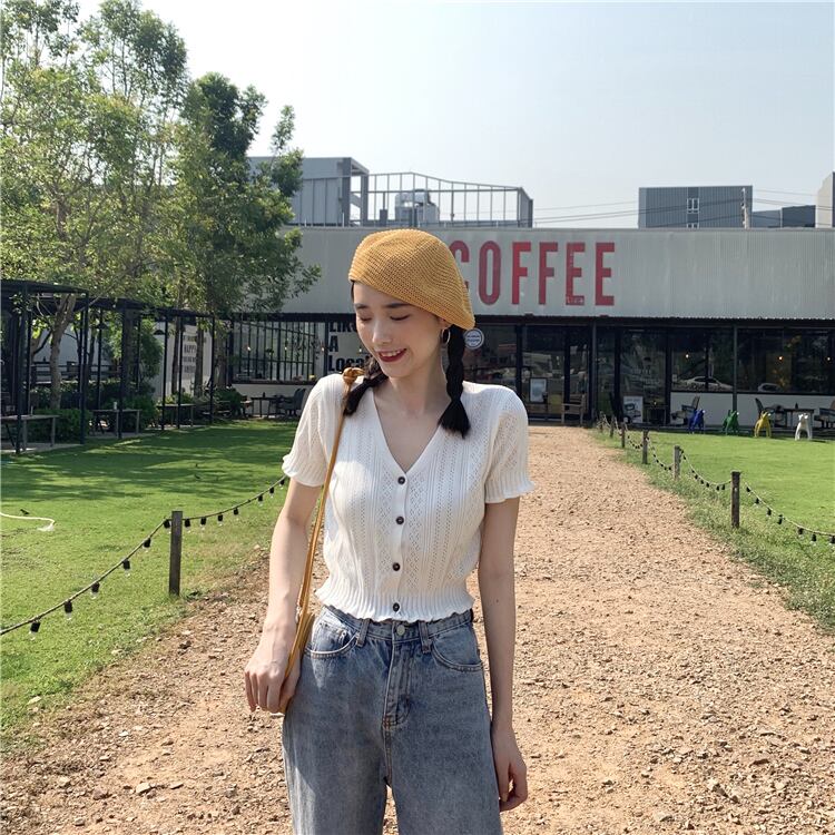 ショートジャケット レディースサマーTシャツ ホワイトVネックニットカーディガン 夏物 1号婦人49421701037