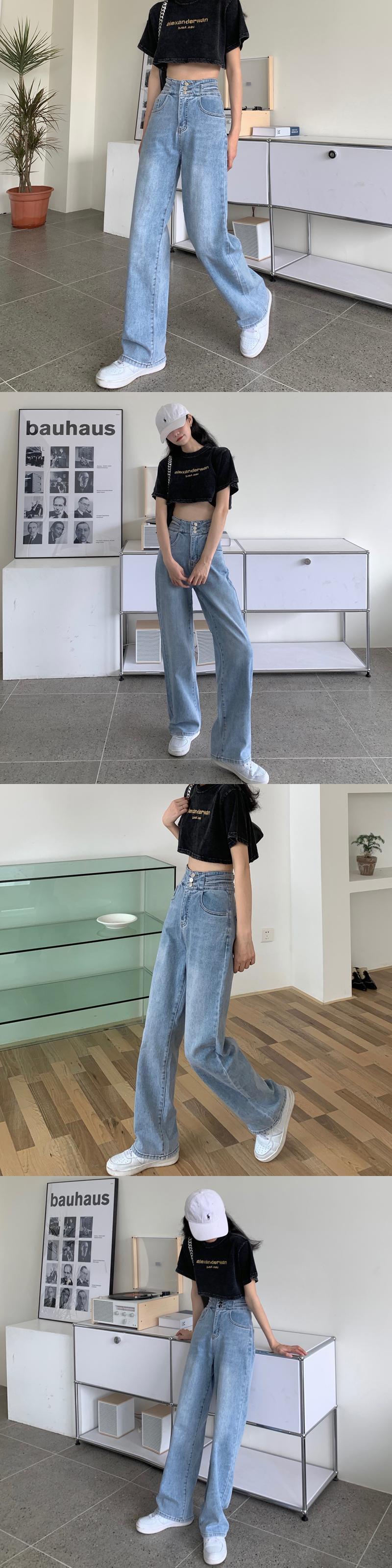 サマージーンズ レディースハイウェストスリムパンツ ルーズ薄手ロング 夏物 1号婦人30159963206