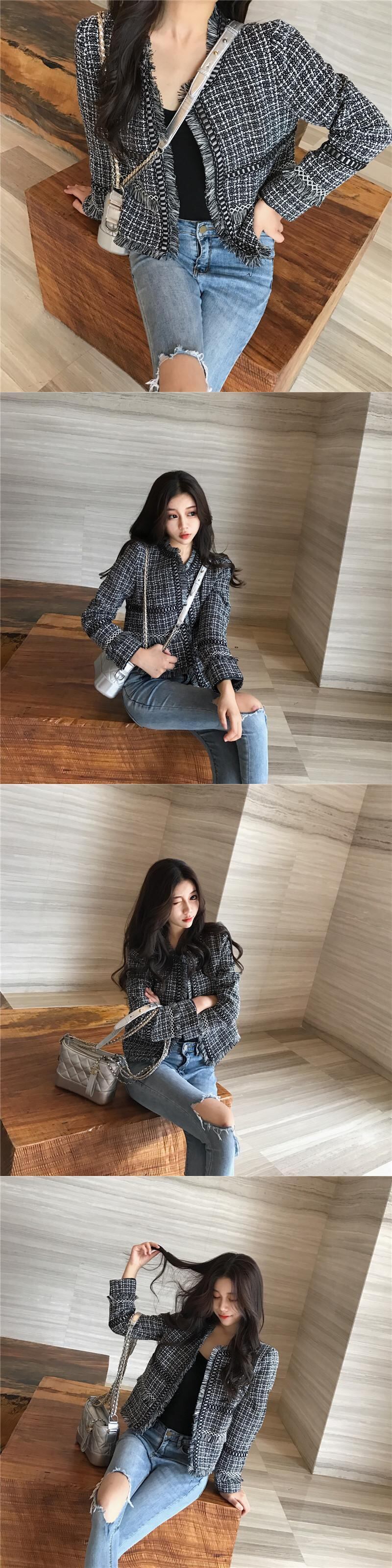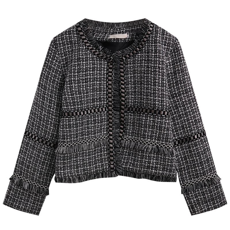長袖スリーブショートジャケット スプリングオータムサマー格子柄ルーズカーディガントップス ロング 春物 夏物 秋物 1号婦人66910507991