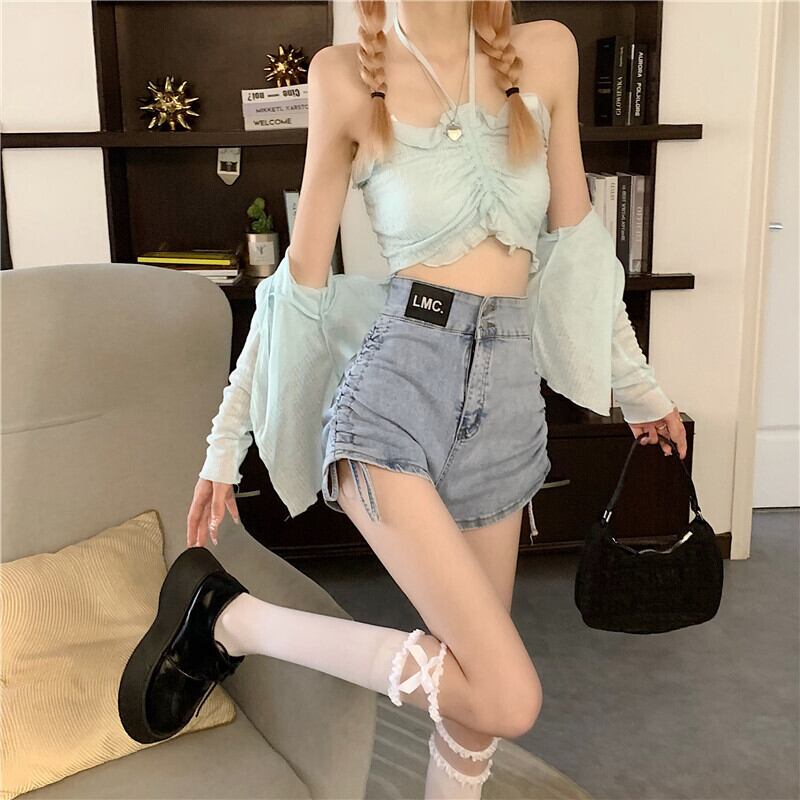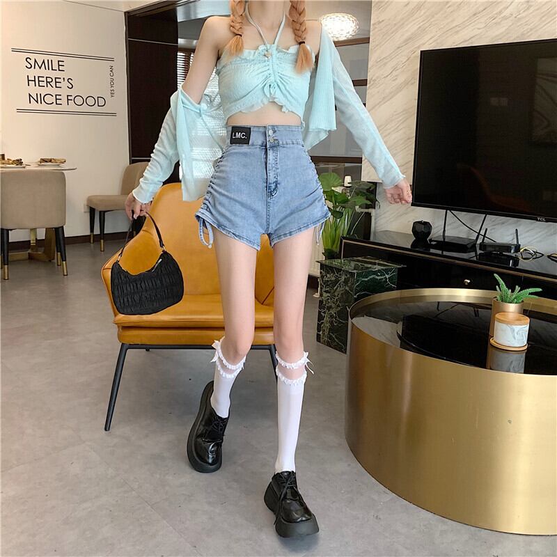 Aラインショーツ サマー薄手ハイウェストウェストスリムブラックギャザーパンツ 夏物 ブルマー 1号婦人75496209707