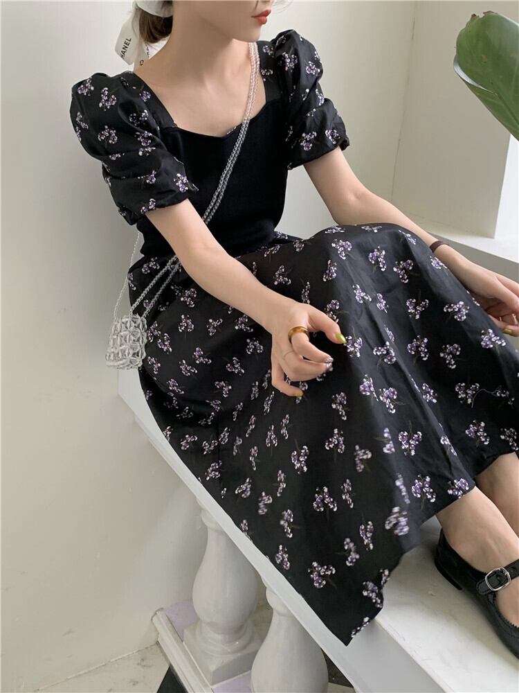スタイルスカート サマードレス スリーブフローラルミディ ストリート 夏物 花柄 スクウェア 1号婦人9860744626