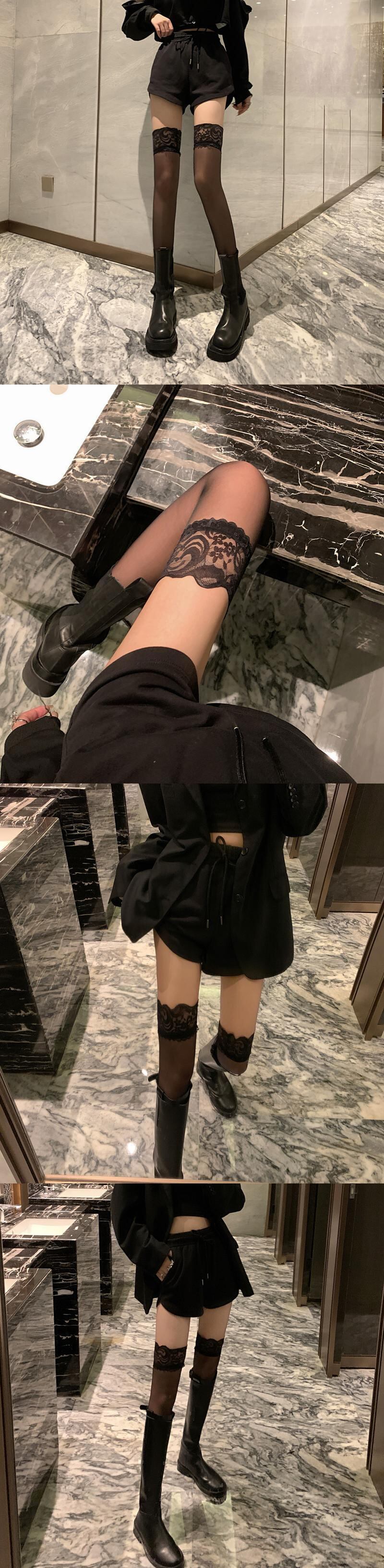 ブラックレースストッキング サマー薄手ソックス 夏物 タイツ シルク 1号婦人23749145090