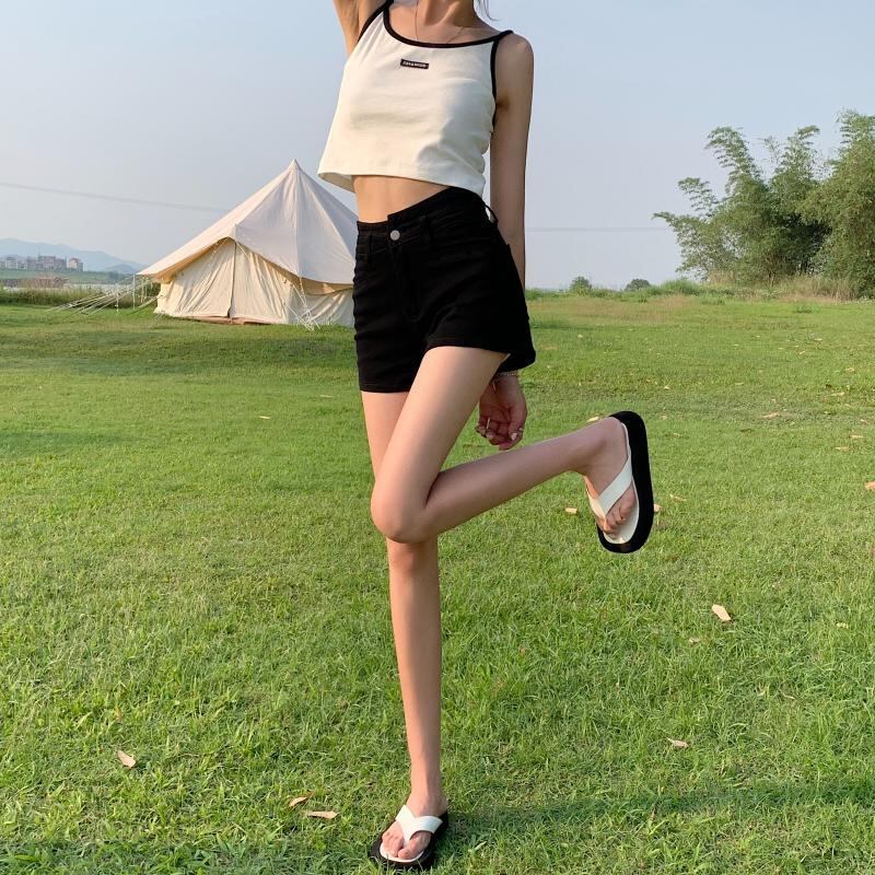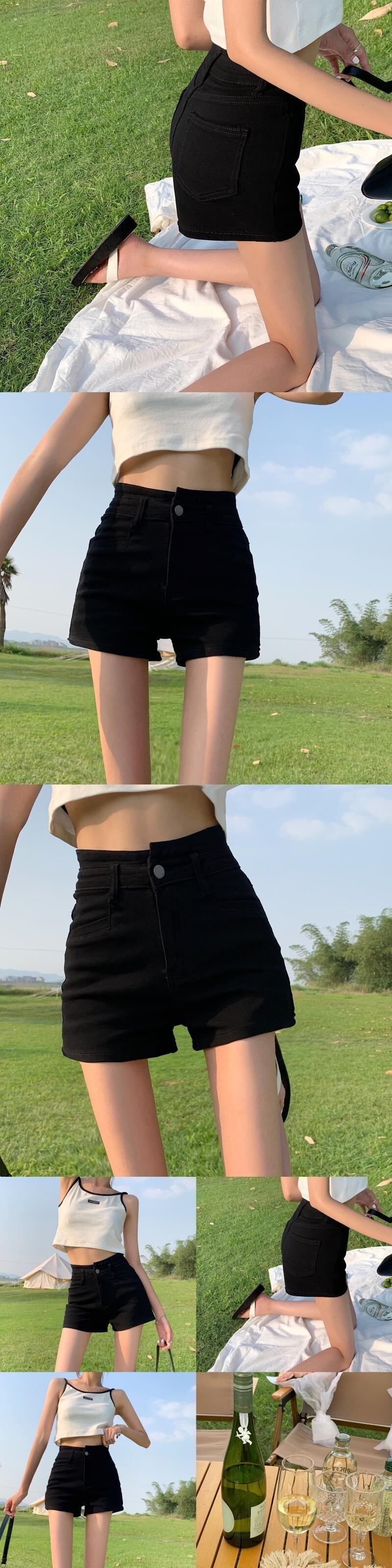 ショーツ サマー薄手ブラックパンツ ハイウェストウェストAライン 夏物 ブルマー 1号婦人74869902763