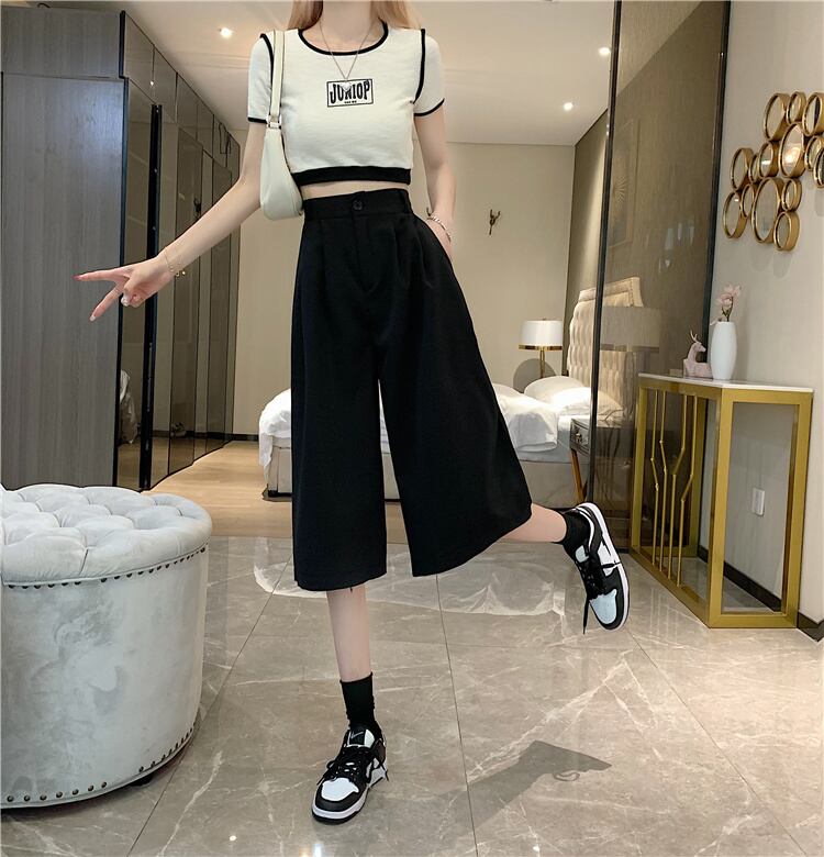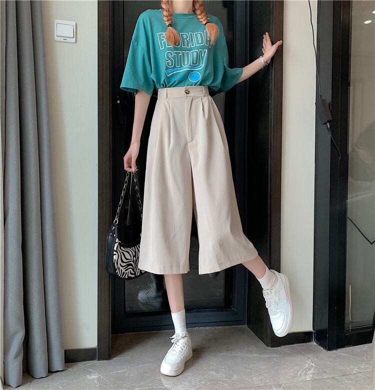 パンツ サマー薄手ハイウェストウェストワイドレッグルーズクロップド 夏物 ワイドパンツ 1号婦人42509075474