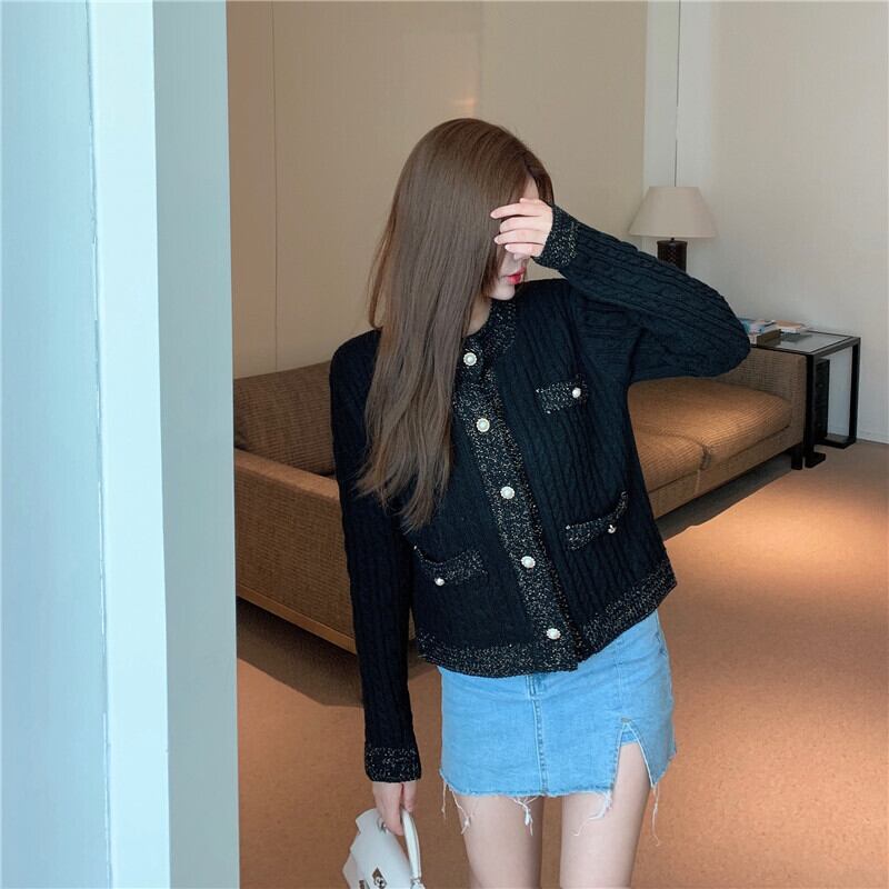 オータムセーター スタイルルーズ薄手ロングブラックカーディガンジャケット 長袖 秋物 1号婦人83929997947
