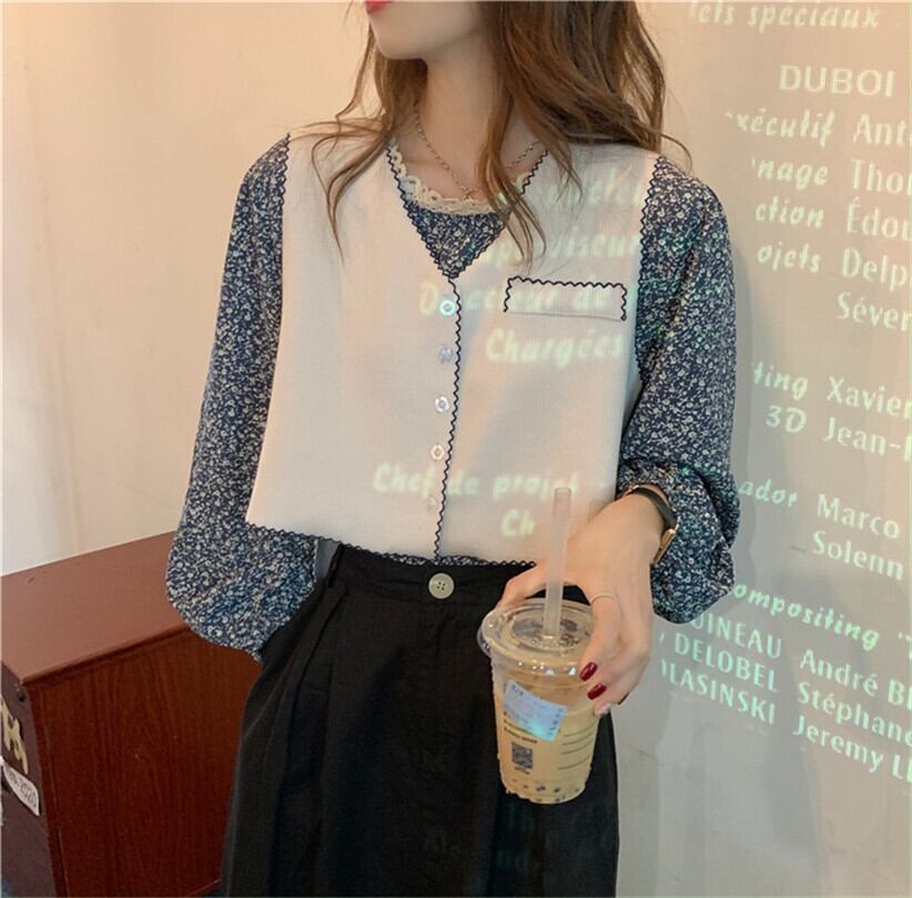 シャツオータムスタイル薄手スタンダードフローラルシフォンブラウス レトロ 秋物 花柄 1号婦人47241737198