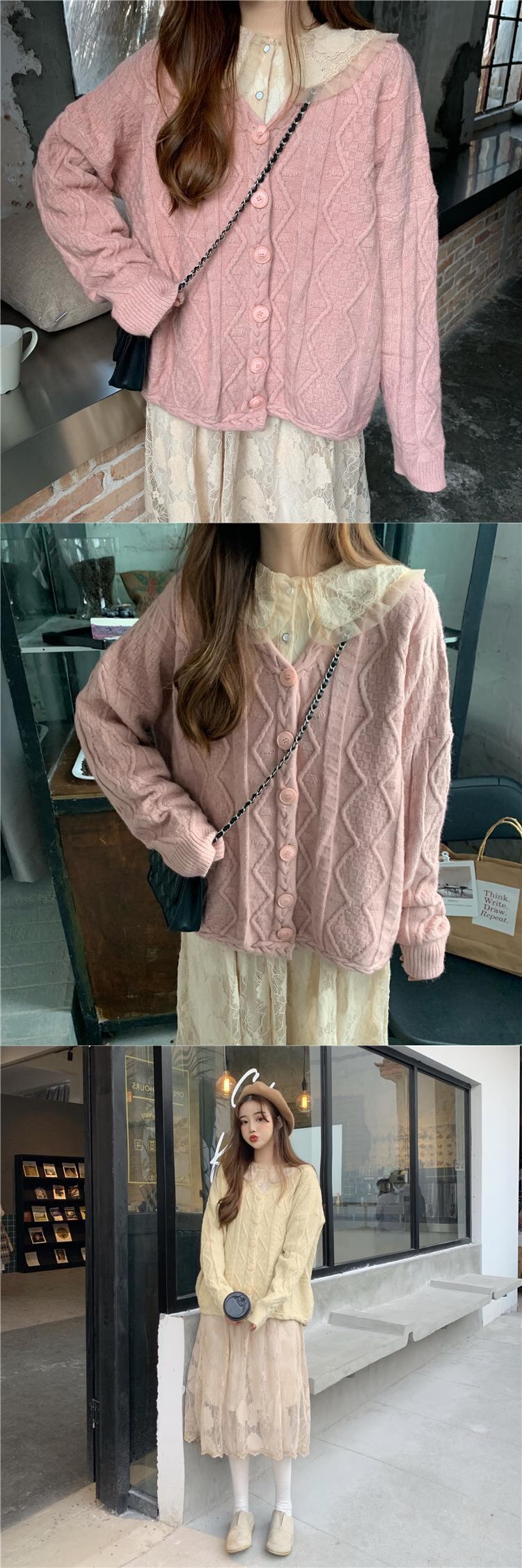 色:黄色いセーター,ピンクのセーター,レーススカート