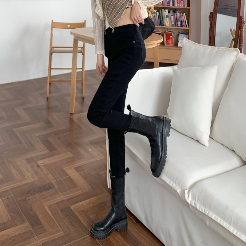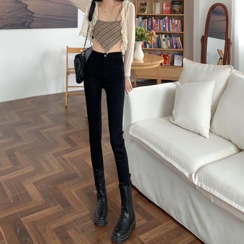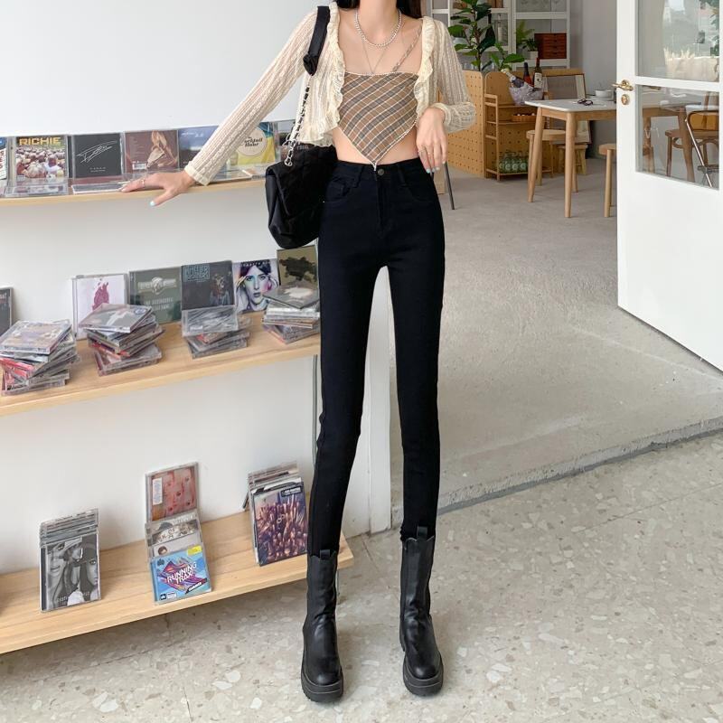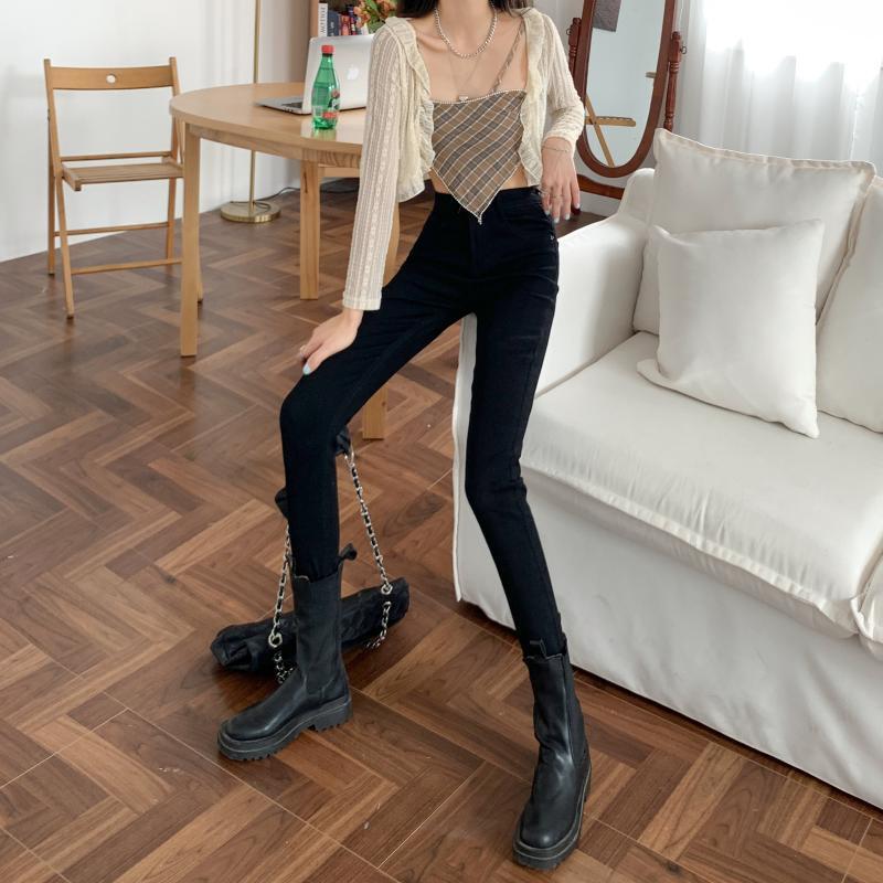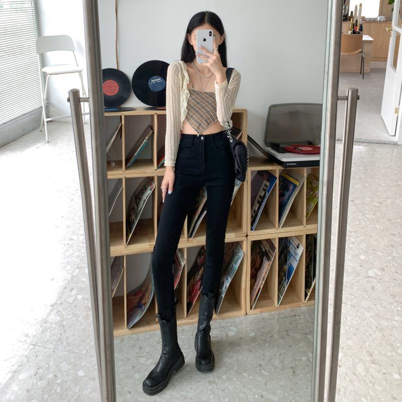 ジーンズ スプリングオータムハイウェストウェストスリムブラッククロップド 春物 秋物 1号婦人22234078441