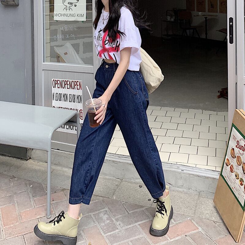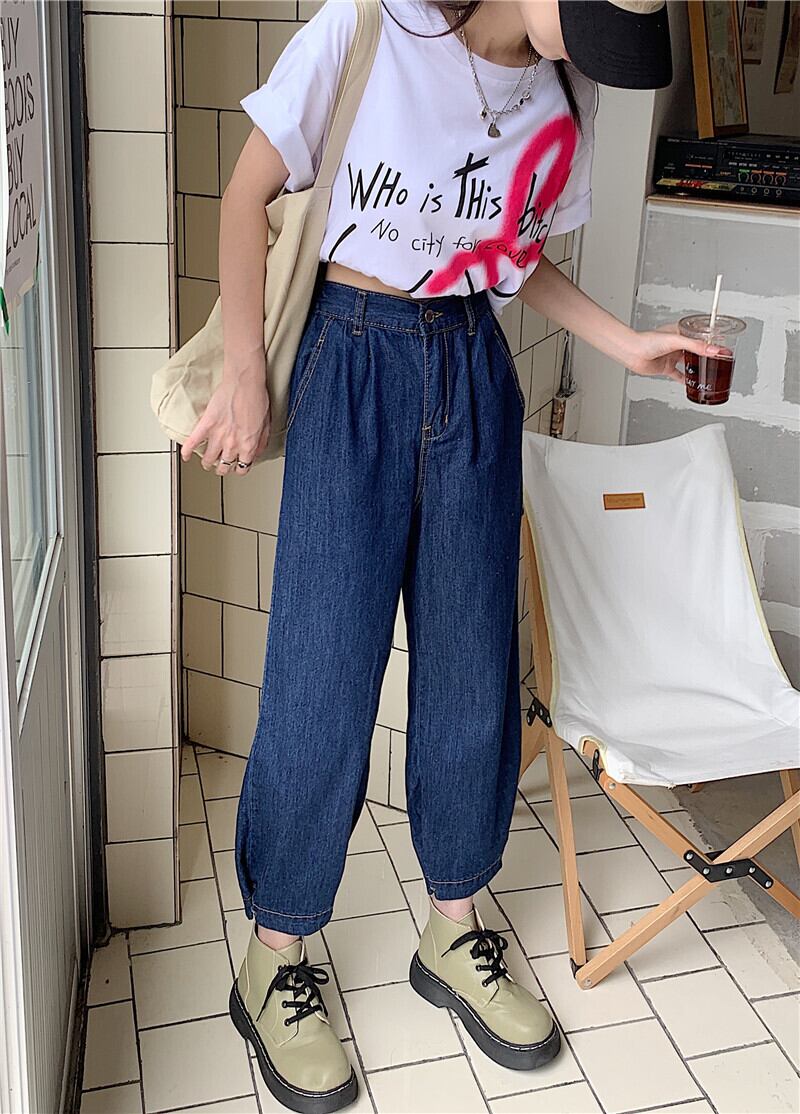 スタンダードジーンズ サマー薄手ハイウェストパンツ レトロ 夏物 1号婦人70141541787