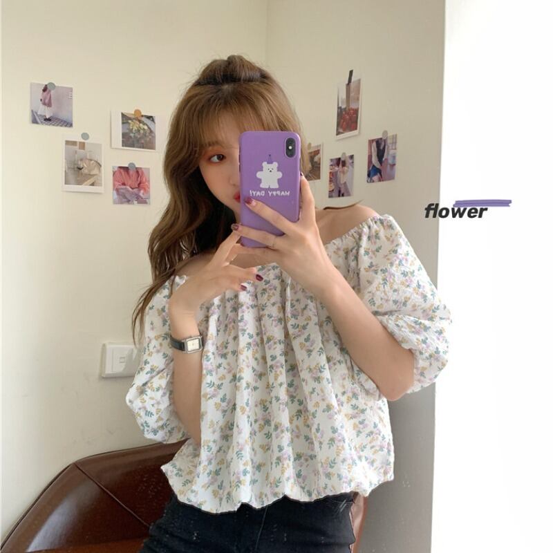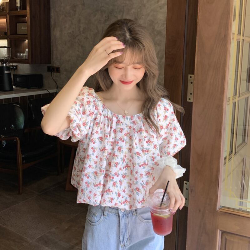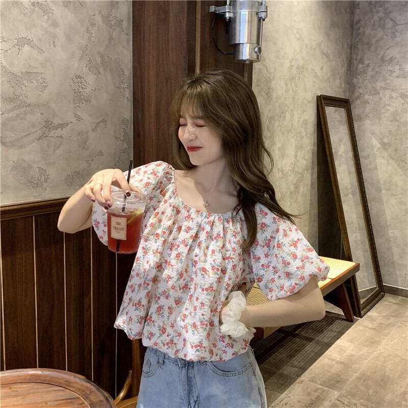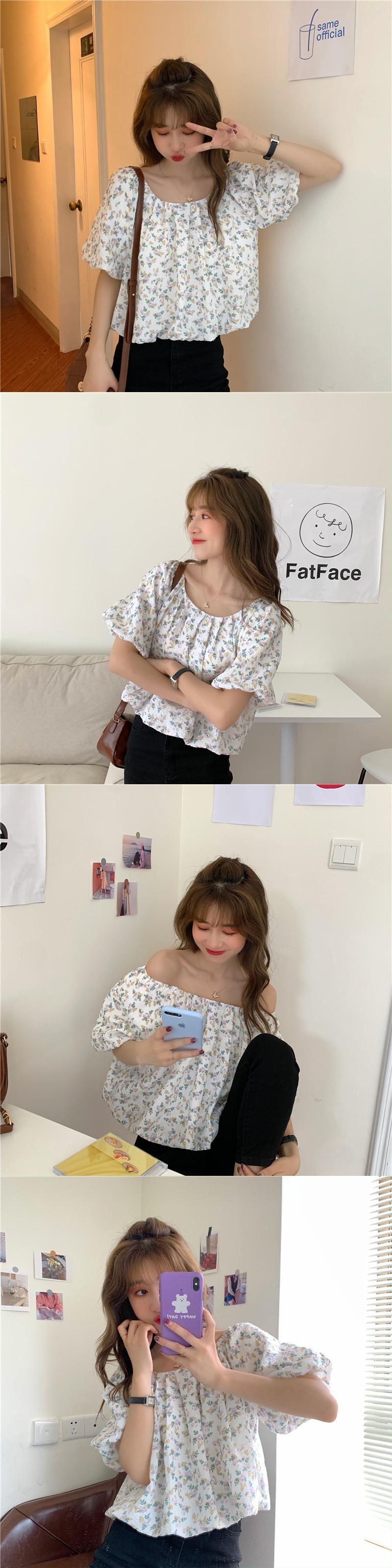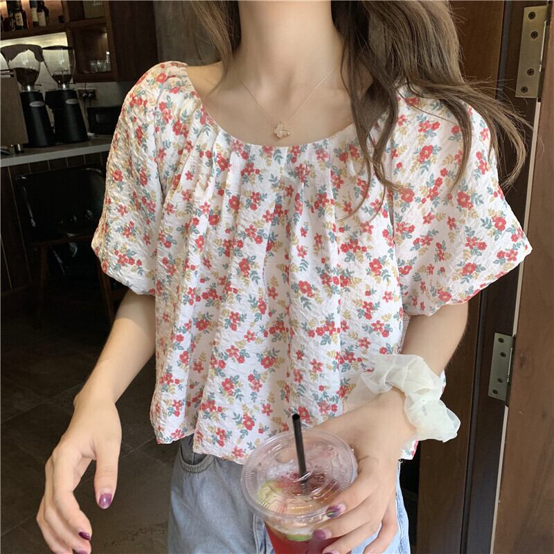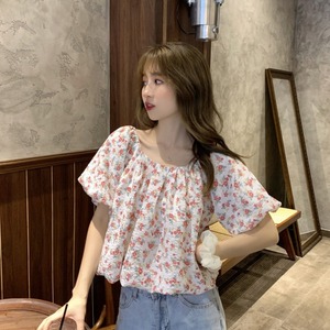 ショートブラウス サマーTシャツ ルーズフローラルスリーブシフォン 半袖 ハーフスリーブ 夏物 花柄 1号婦人93756126742