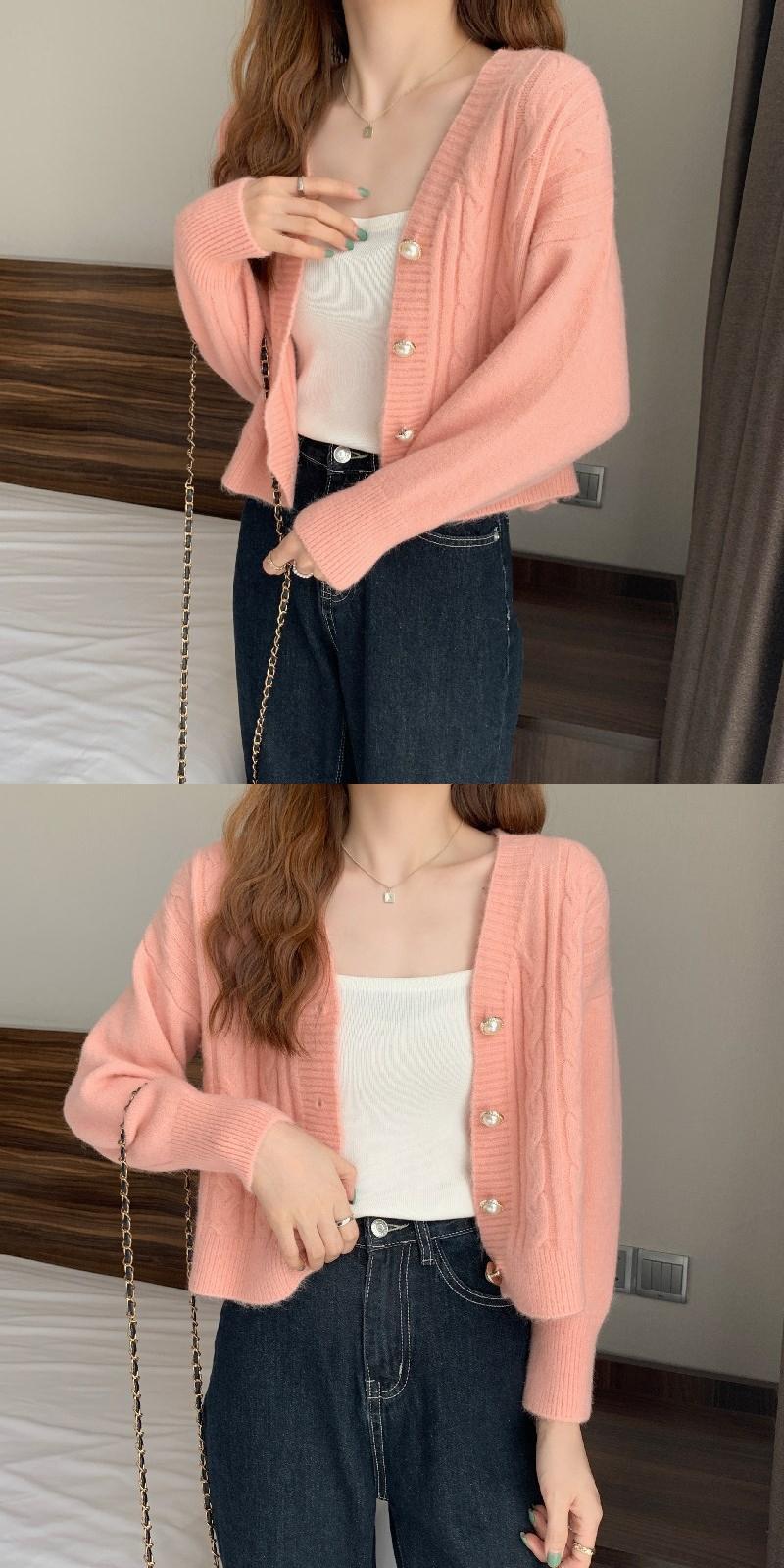 スプリングオータムニットセーター スタイルVネックカーディガンショートコート トップス ロング 春物 秋物 1号婦人69772297146