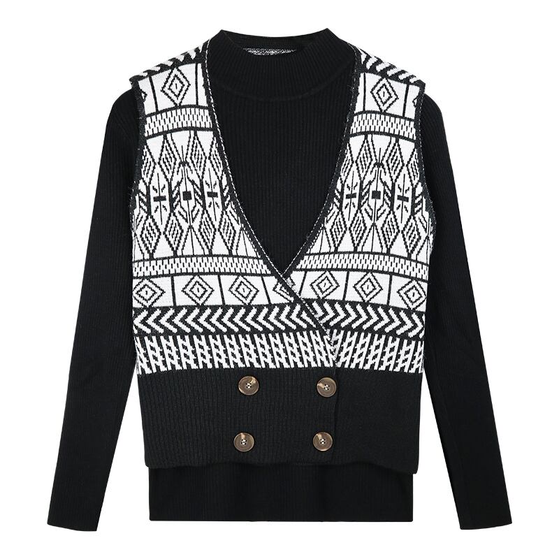 ニットスプリングオータムスタンダードパターン薄手Vネックルーズセーター コート レトロ 春物 秋物 1号婦人23246303763