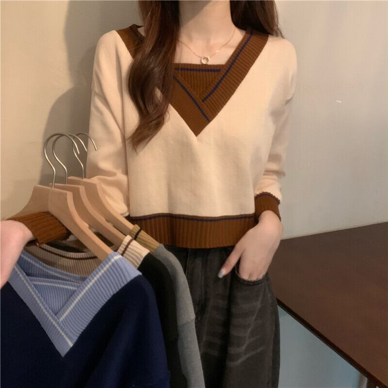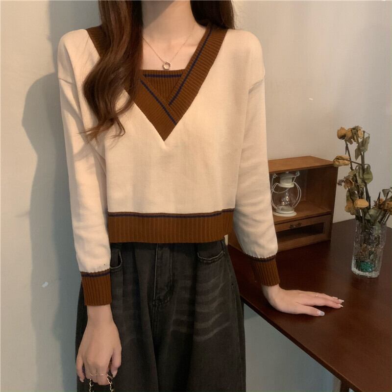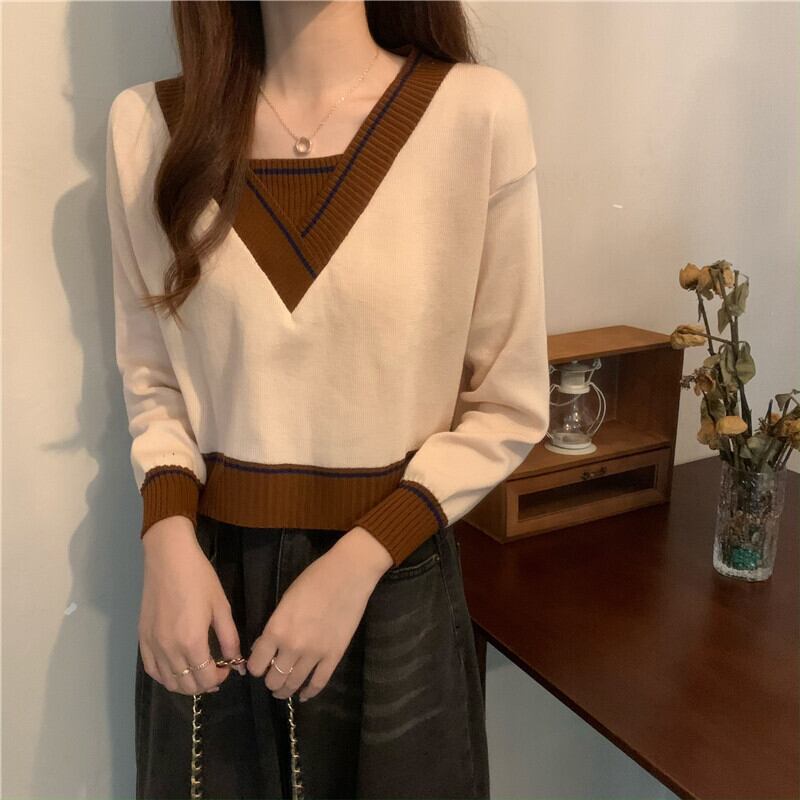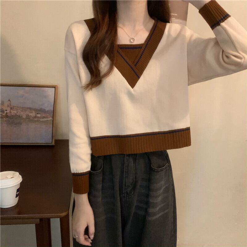 セーター オータムジャケット Vネックスタンダードショートロング レトロ 長袖 秋物 1号婦人10768821292