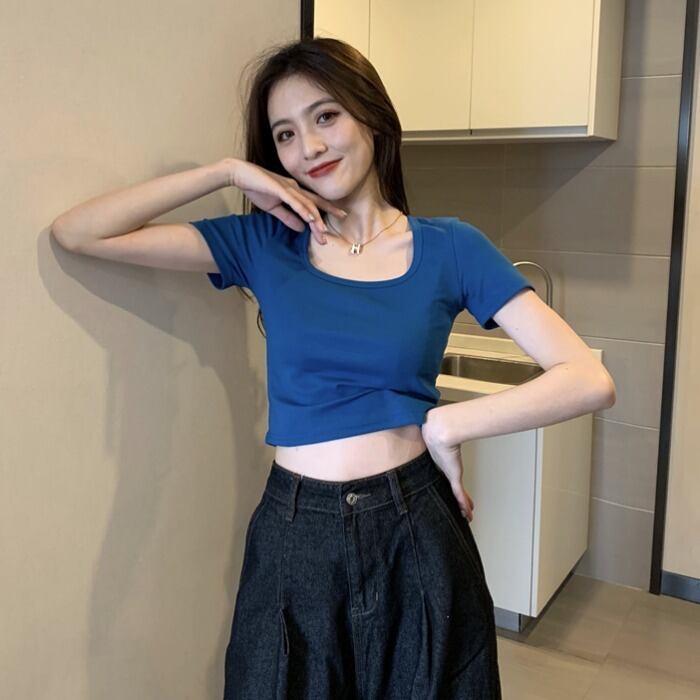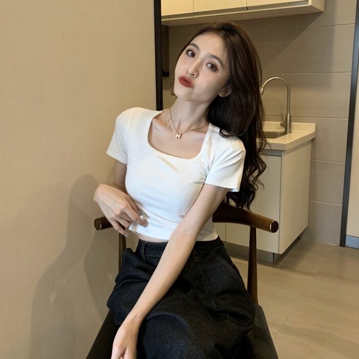 スリムホワイトショートTシャツ シャツ サマー薄手ラウンドネック 夏物 Oネック 1号婦人55259125593