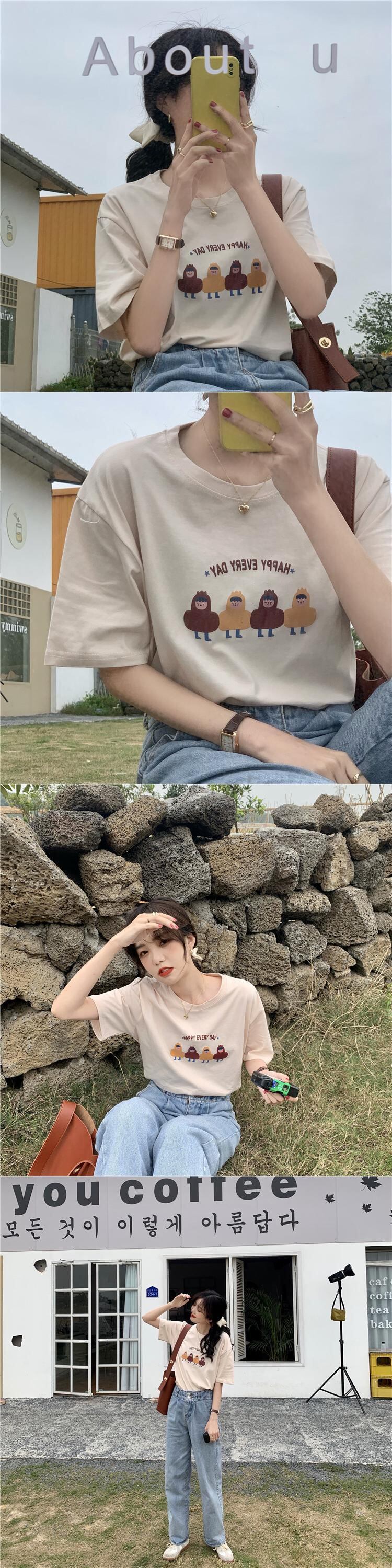 プリントルーズホワイトTシャツ 薄手サマー 大人ガーリー スウィート キュート カジュアル 夏物 1号婦人19147439560