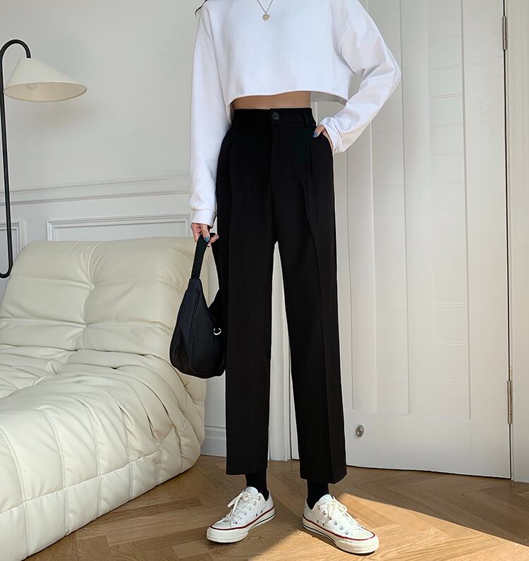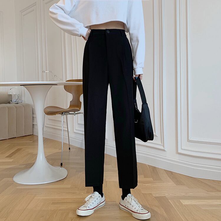 オータムハイウェストカジュアルパンツ 薄手ルーズスリム 秋物 1号婦人26501833270