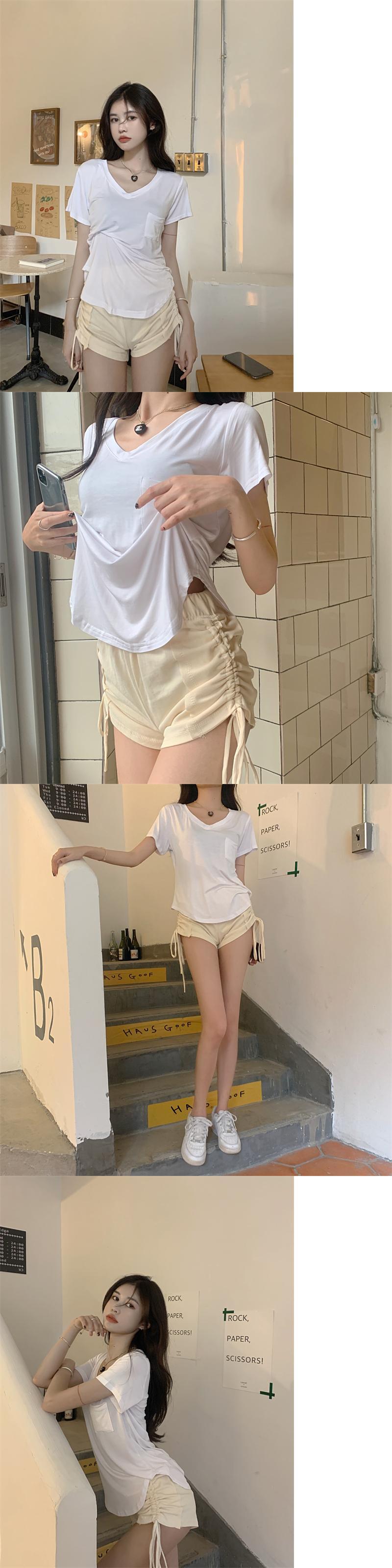 色:ホワイトトップ,ブラックトップ,グレートップ,アプリコットショーツ,セメントグレーショーツ,ダークグレーのショートパンツ