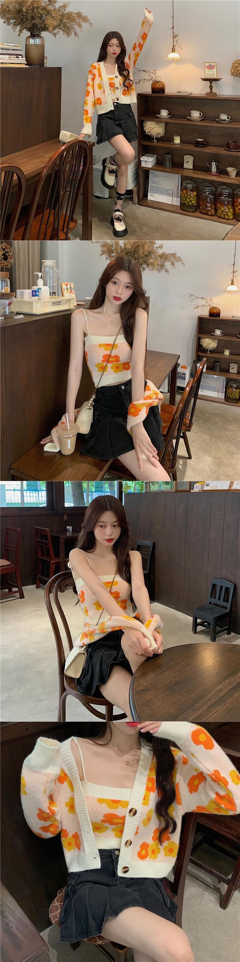 オータムスタイルスタンダードFlowerデザイン ショートカーディガンニット レトロ 秋物 フラワーデザイン 1号婦人28791651069
