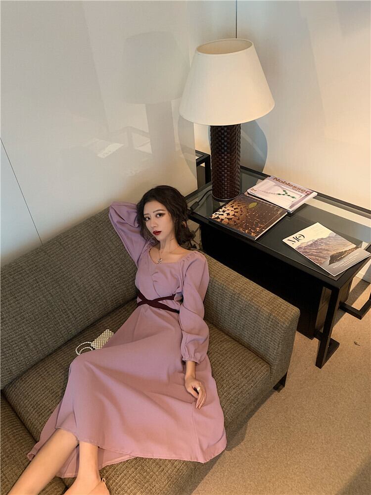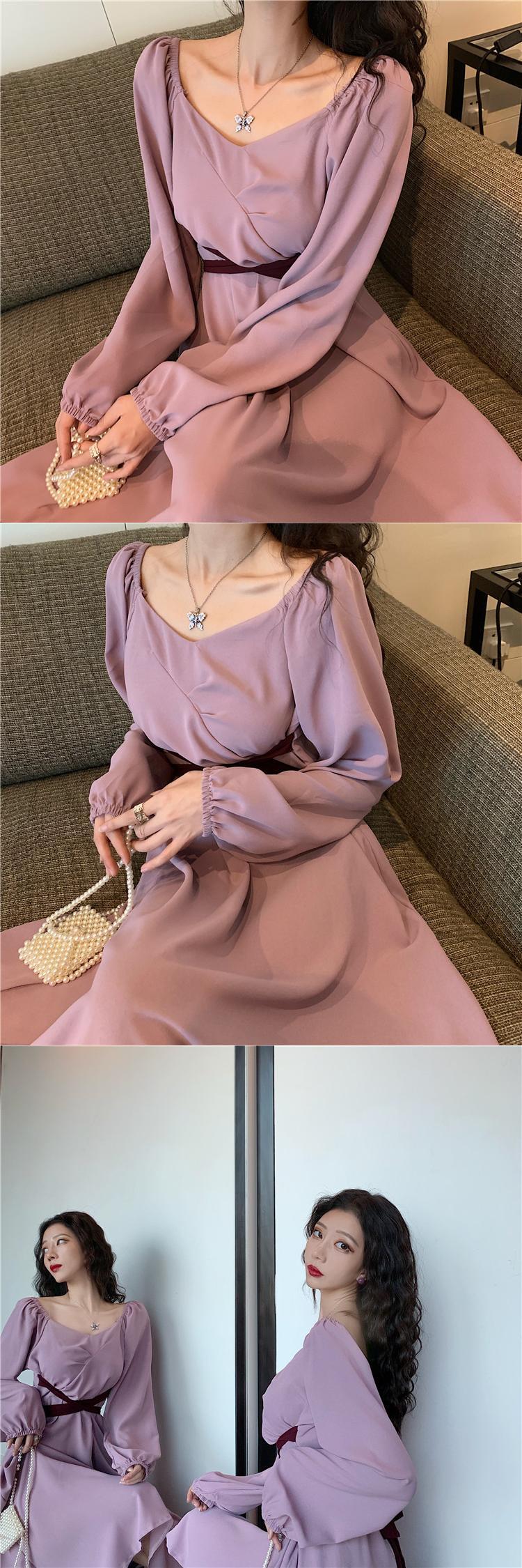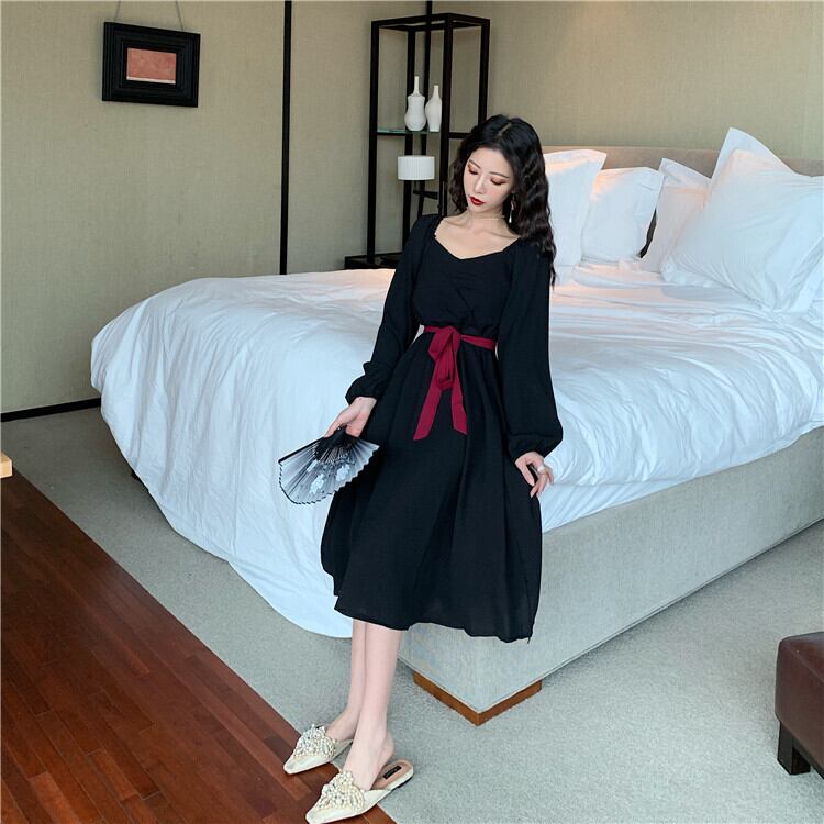 スプリングオータムドレス ウェストスリーブブラック 春物 秋物 1号婦人39400654846