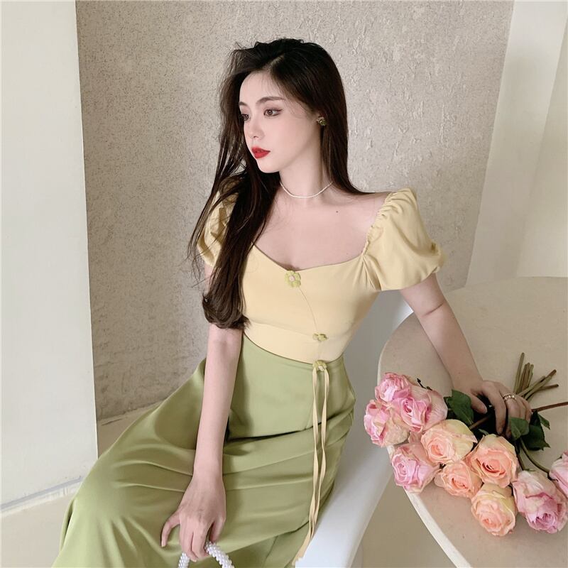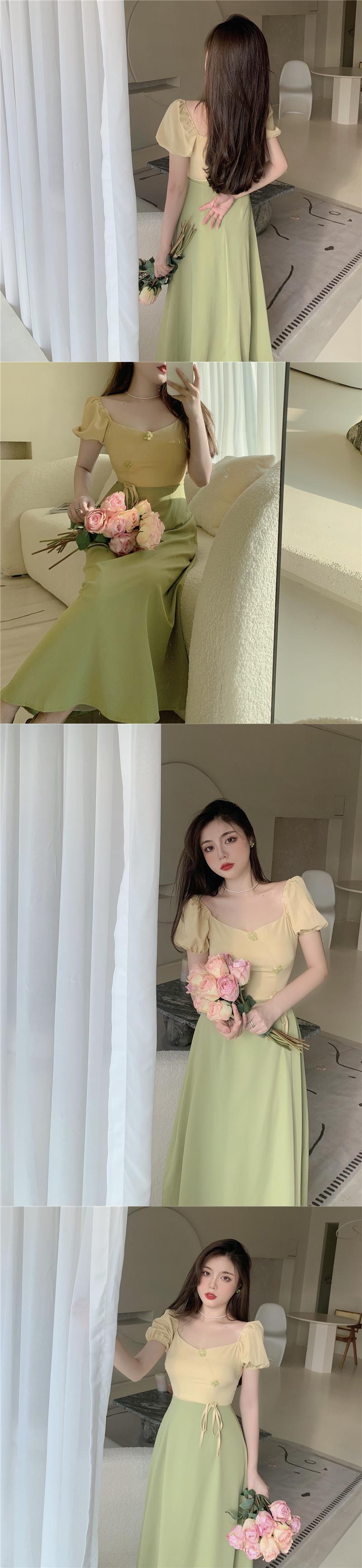 ドレス レディースサマースタンダードウェストスリーブ レトロ 夏物 スクウェア 1号婦人25187835262