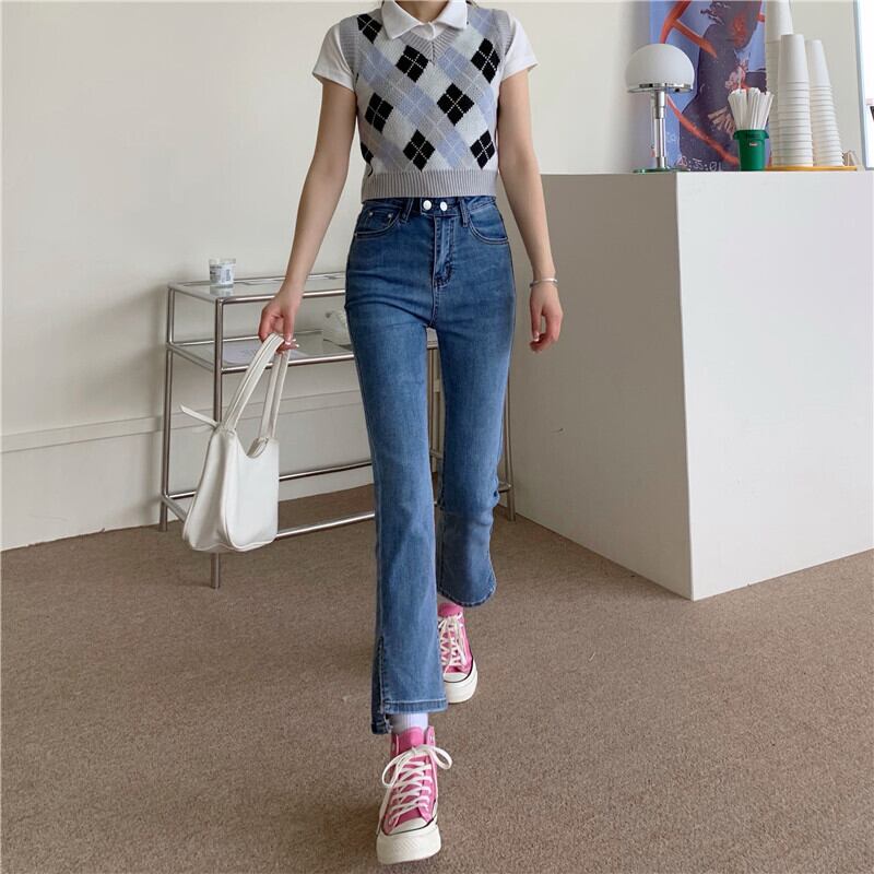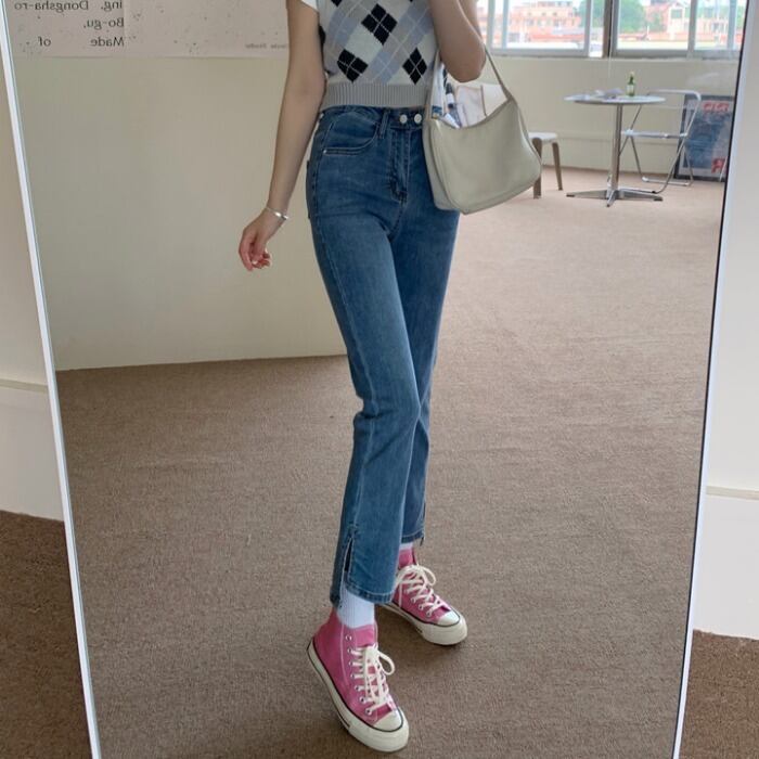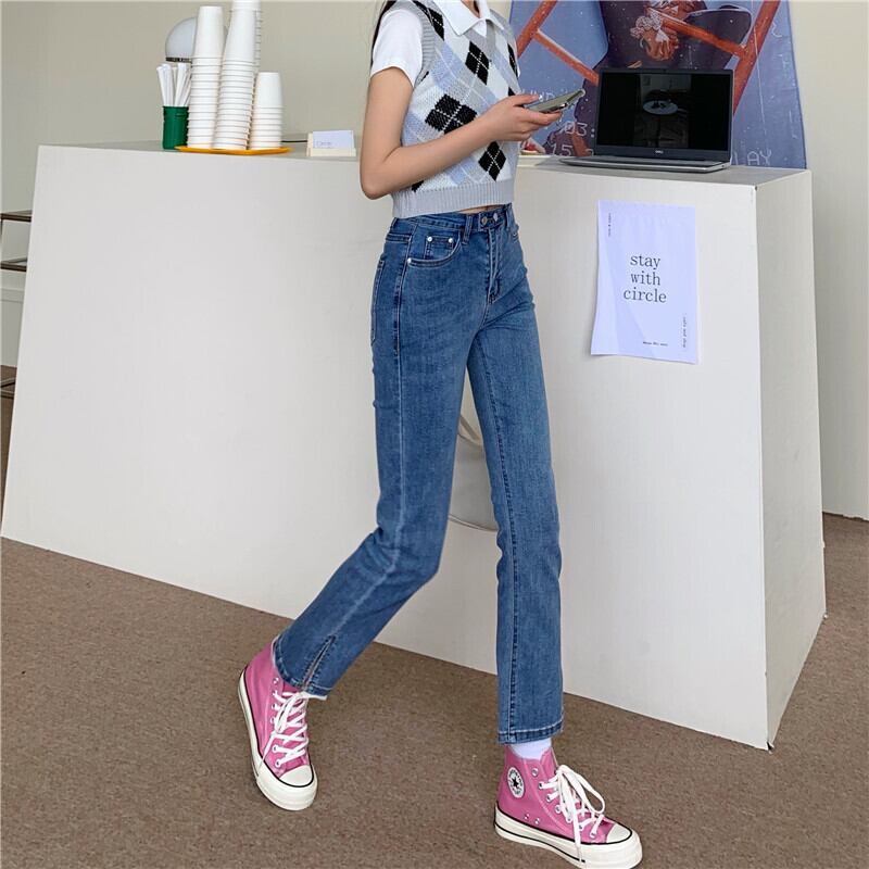 パンツ スプリングオータム薄手ハイウェストジーンズ 春物 秋物 1号婦人84492875248