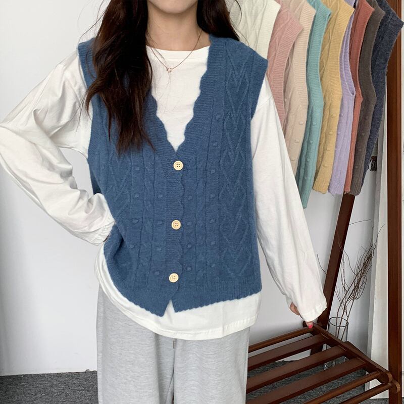 ニットスプリングオータムルーズスタイルVネック 春物 秋物 1号婦人9285701622