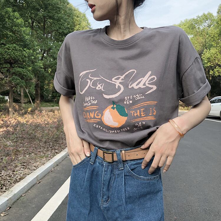 トップス サマーTシャツ 薄手ルーズプリント柄半袖スリーブ ショート ハーフスリーブ 大人ガーリー スウィート キュート カジュアル 夏物 1号婦人39308056787
