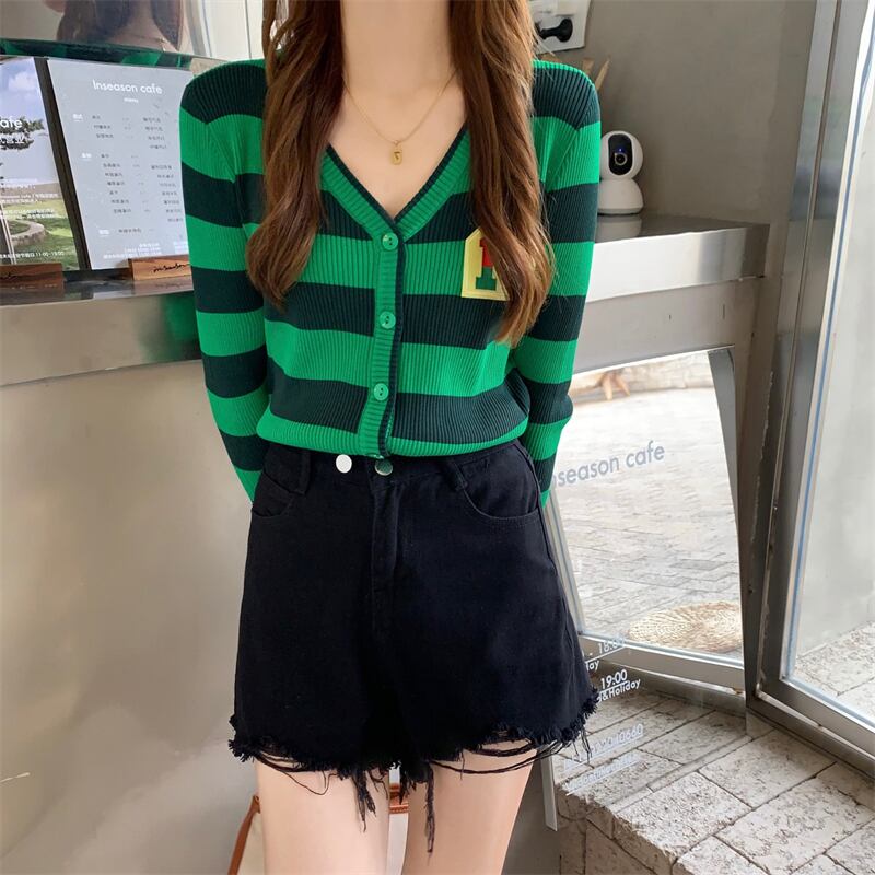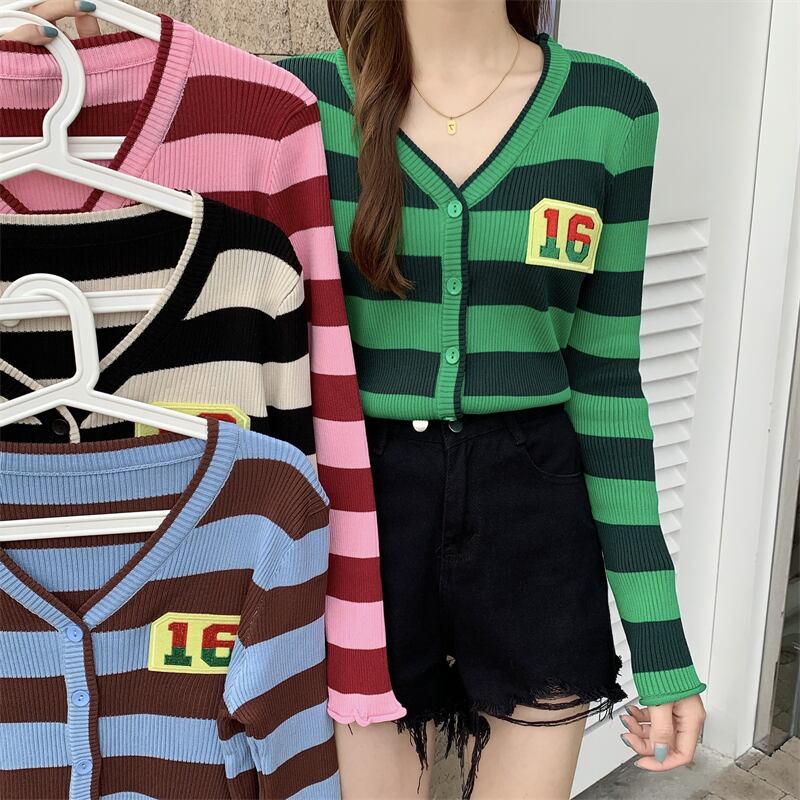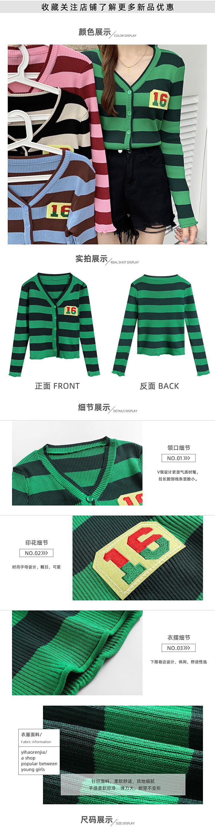 セーター カーディガンジャケット スプリングオータムルーズVネックストライプトップス ロング 春物 秋物 1号婦人7784689125