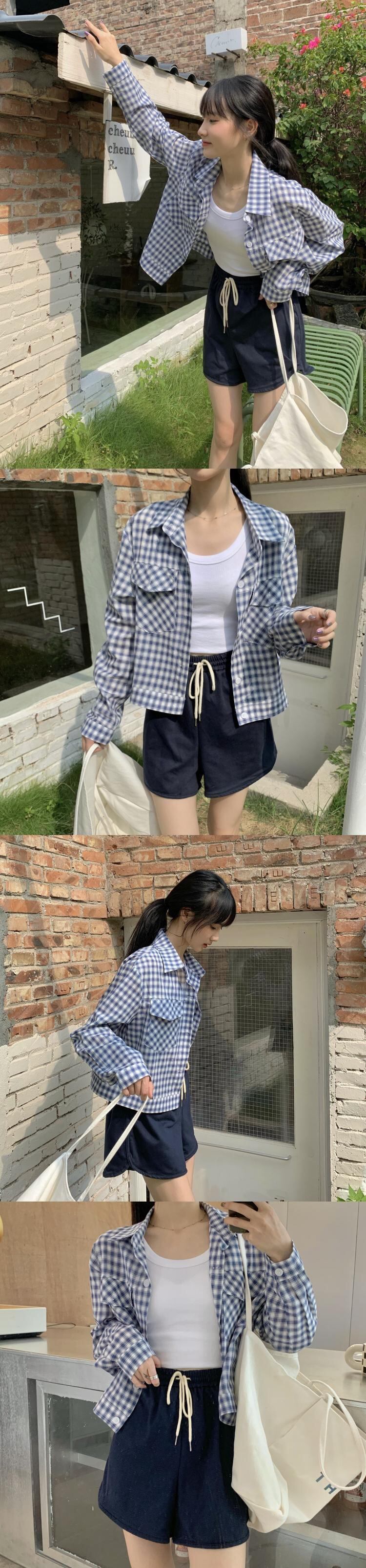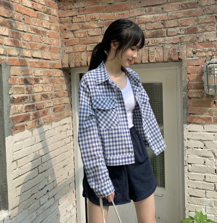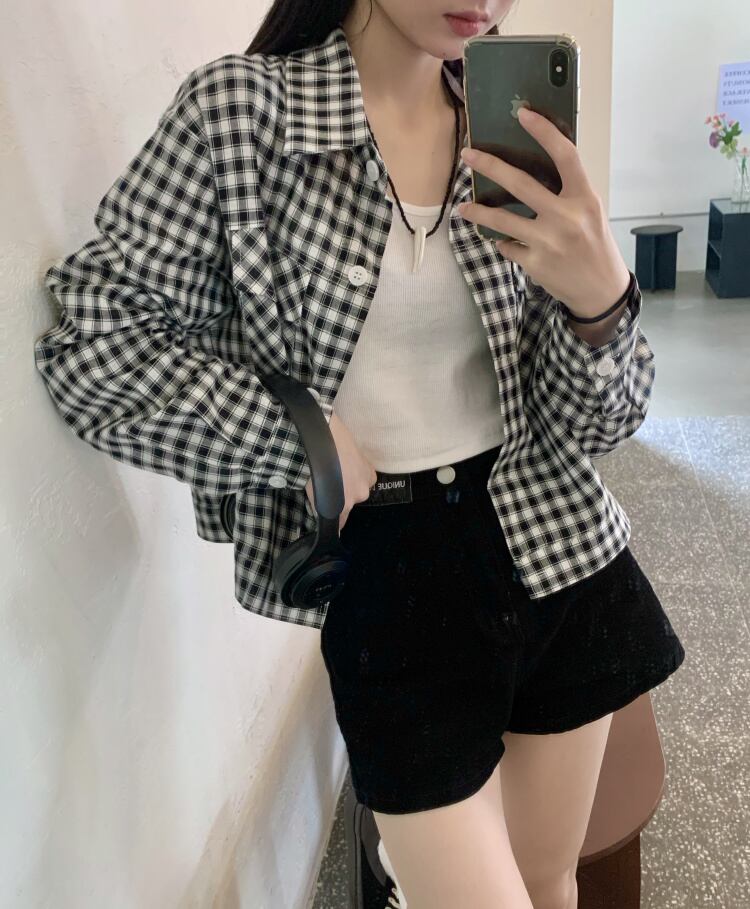 スタンダード格子柄ショートジャケット スプリングオータムルーズトップス ロング レトロ 春物 秋物 1号婦人21407331728