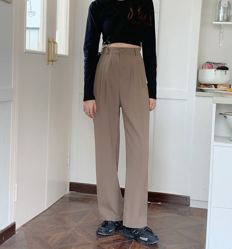 パンツ スプリングオータム薄手ハイウェストウェストストレッチ エラスティック 伸縮 春物 秋物 1号婦人92945691074
