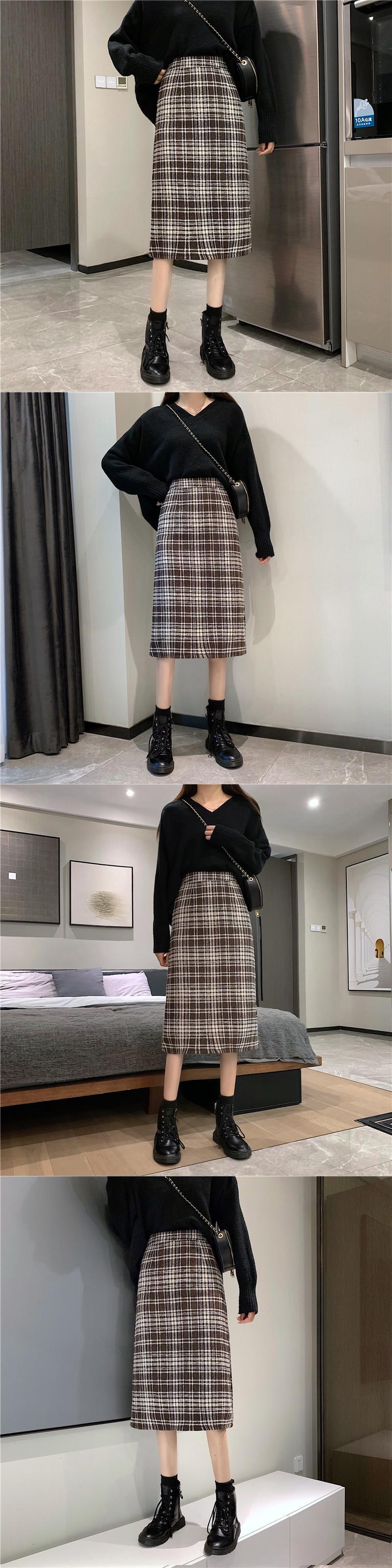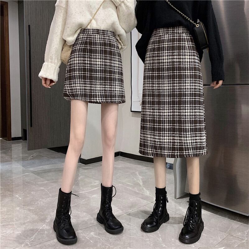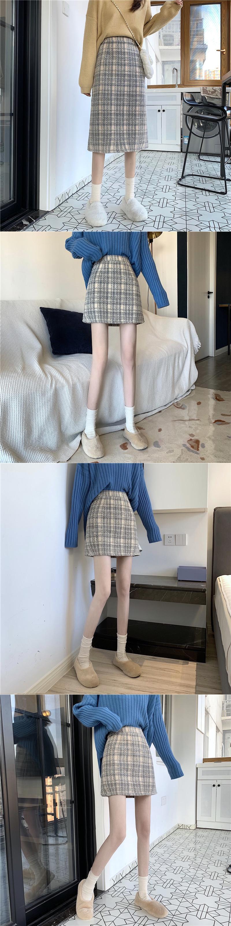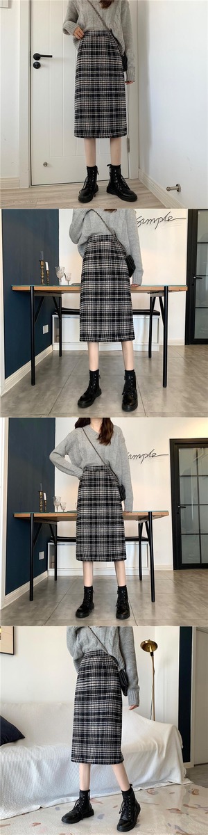 Aラインスカート オータムスタンダード格子柄ハイウェストウェスト薄手ショート レトロ 秋物 1号婦人25961581194
