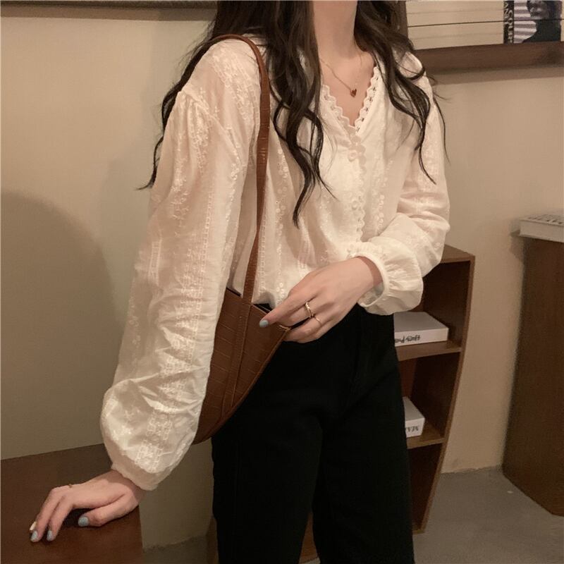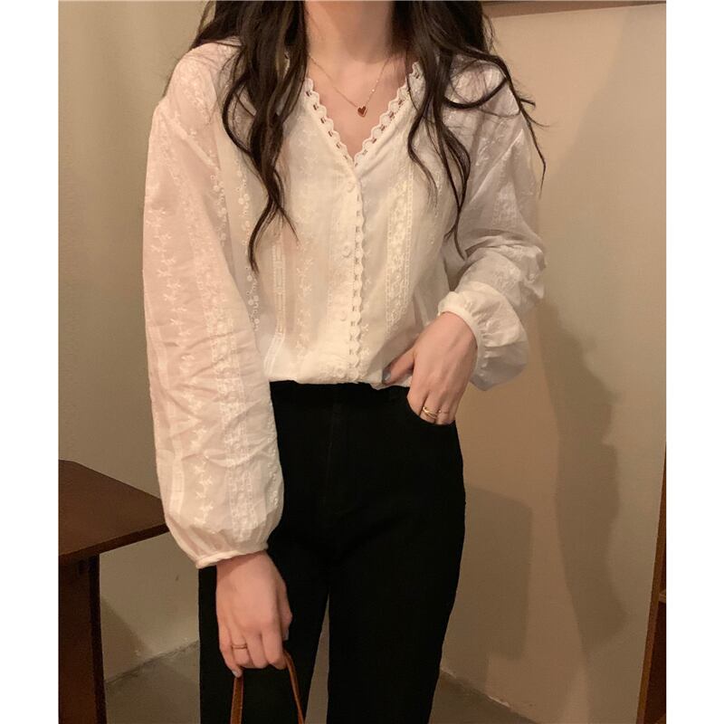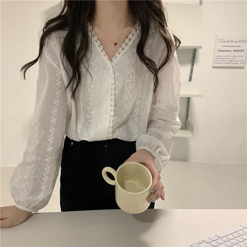 シャツ スプリングオータム薄手ホワイトトップス ロング 春物 秋物 1号婦人46579021065