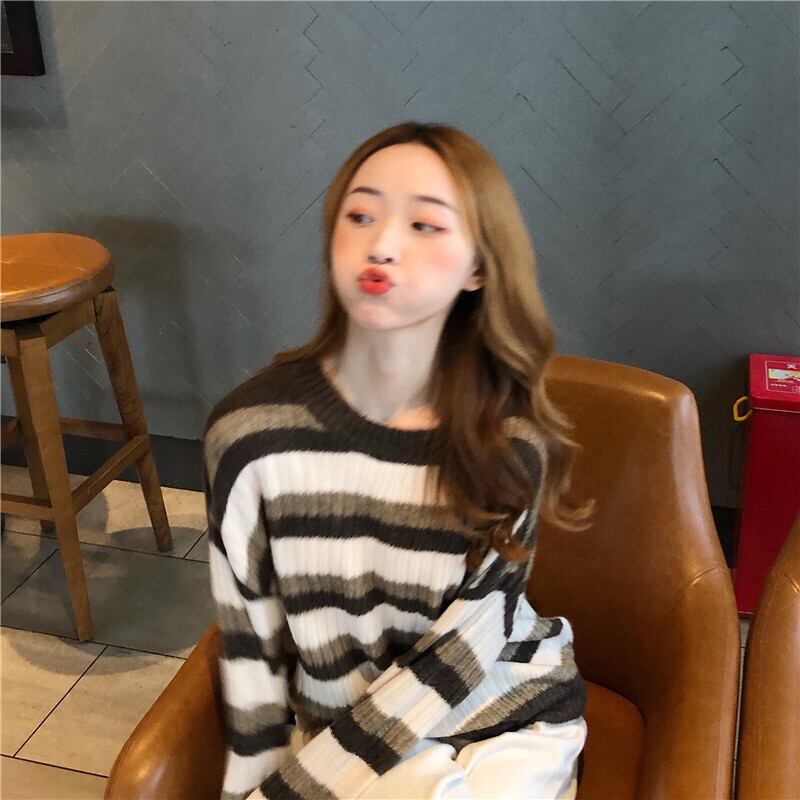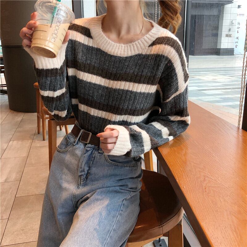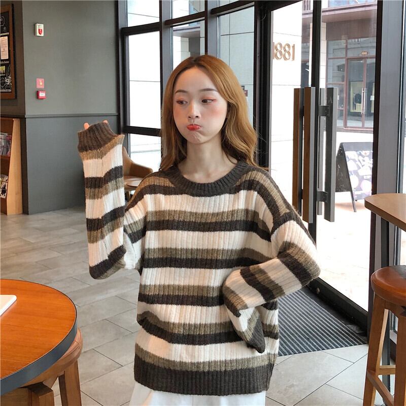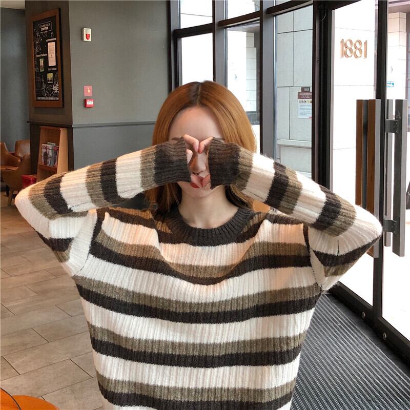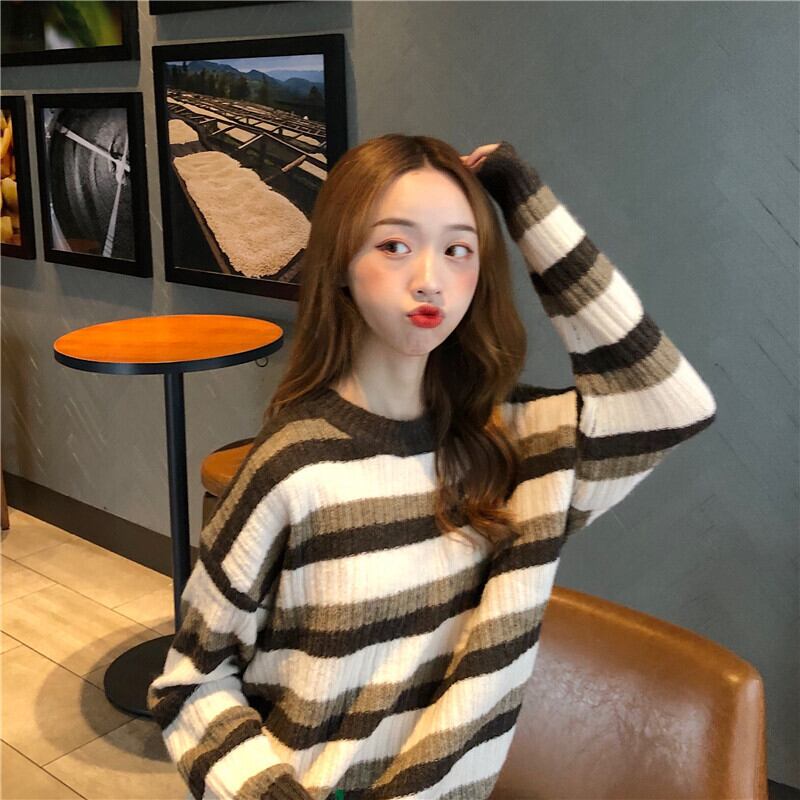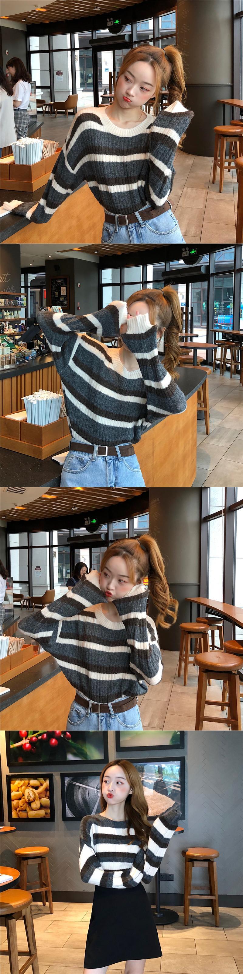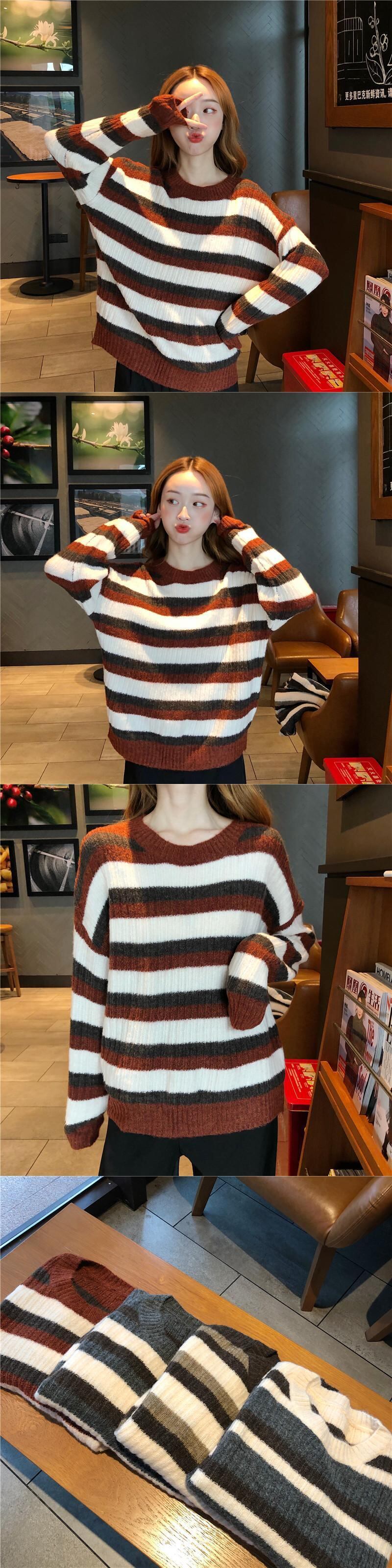 オータムウィンタールーズセーター スタンダードスタイルストライプニットトップス レトロ 秋物 冬物 1号婦人55115717254