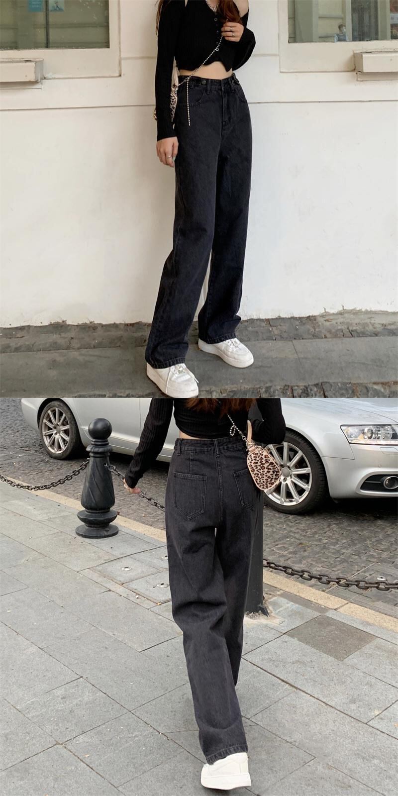 ジーンズ スプリングオータムルーズハイウェスト 春物 秋物 1号婦人63619893700