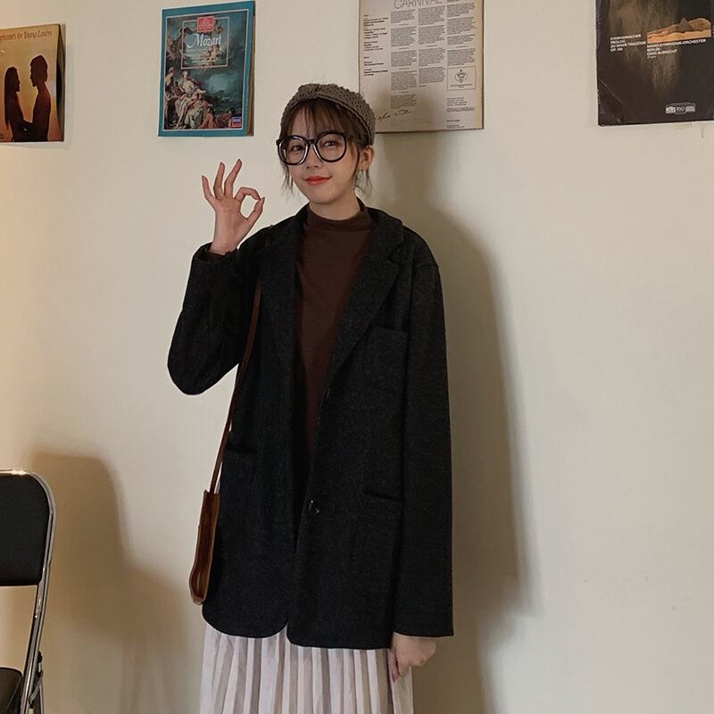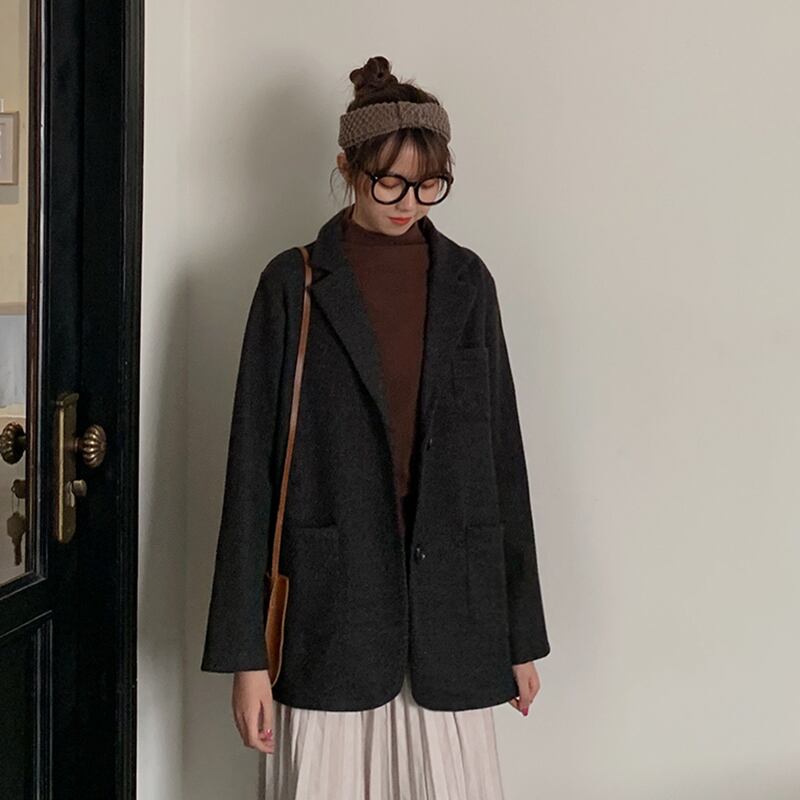 オータムジャケット スプリングブラックルーズ ロング 春物 秋物 1号婦人93007153385