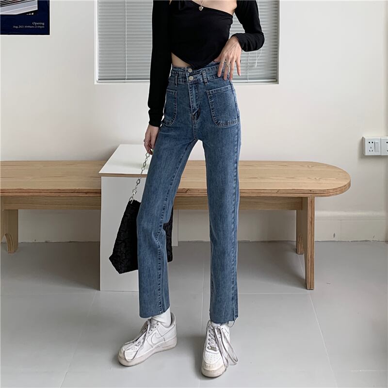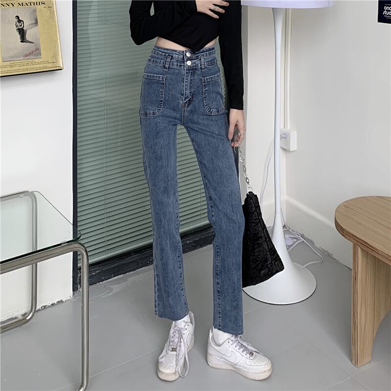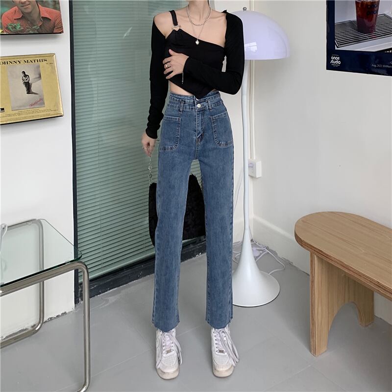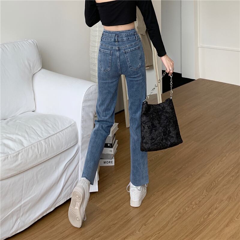 レッドジーンズ スプリングオータムハイウェストウェストスリムクロップドパンツ 春物 秋物 1号婦人76218206523