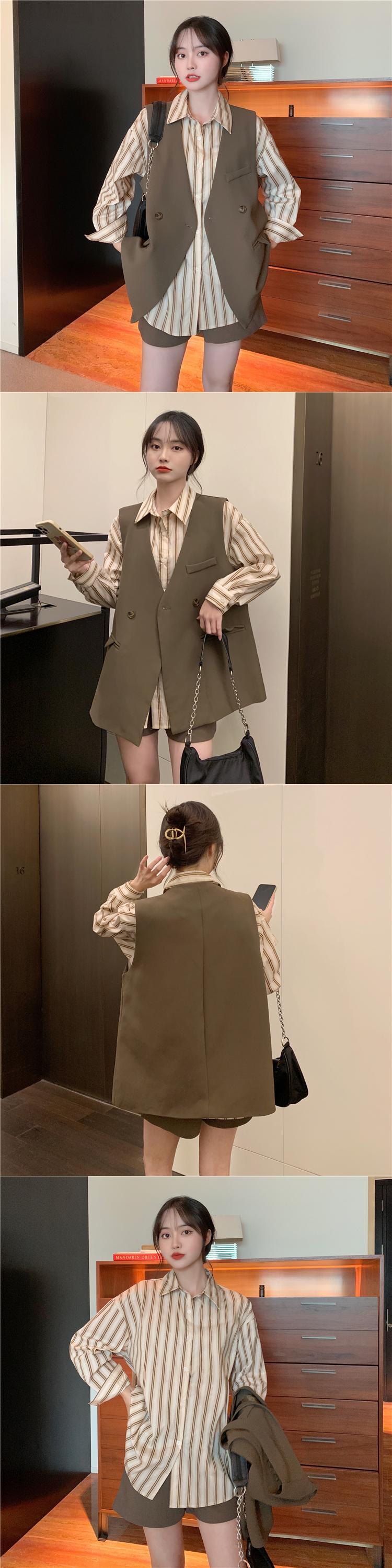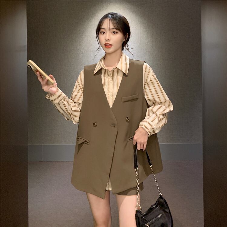 オータムスタイルスタンダードカジュアルストライプシャツ レトロ 秋物 1号婦人20564844340